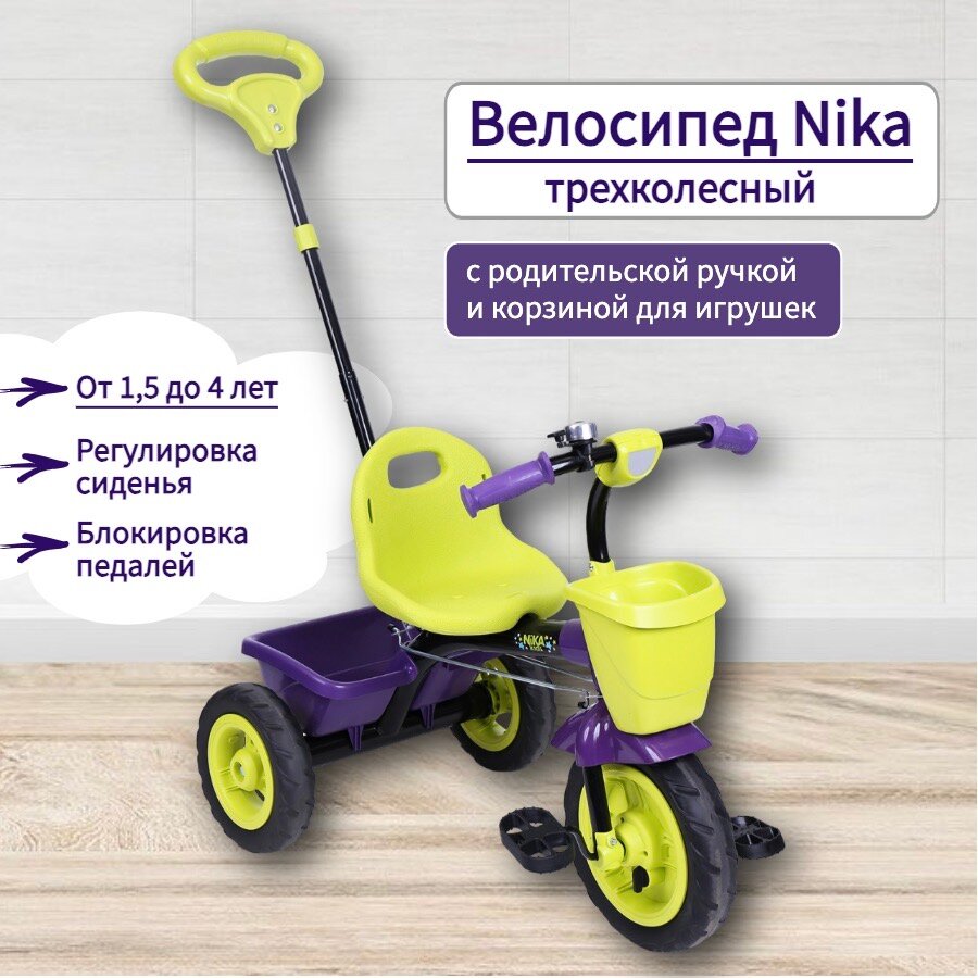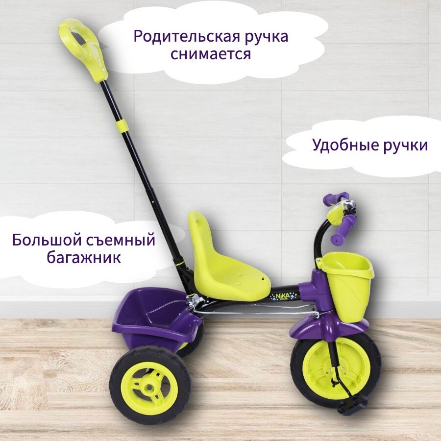 Купить Трехколесный велосипед Nika ВДН2, фиолетовый с лимонным (требует финальной сборки)