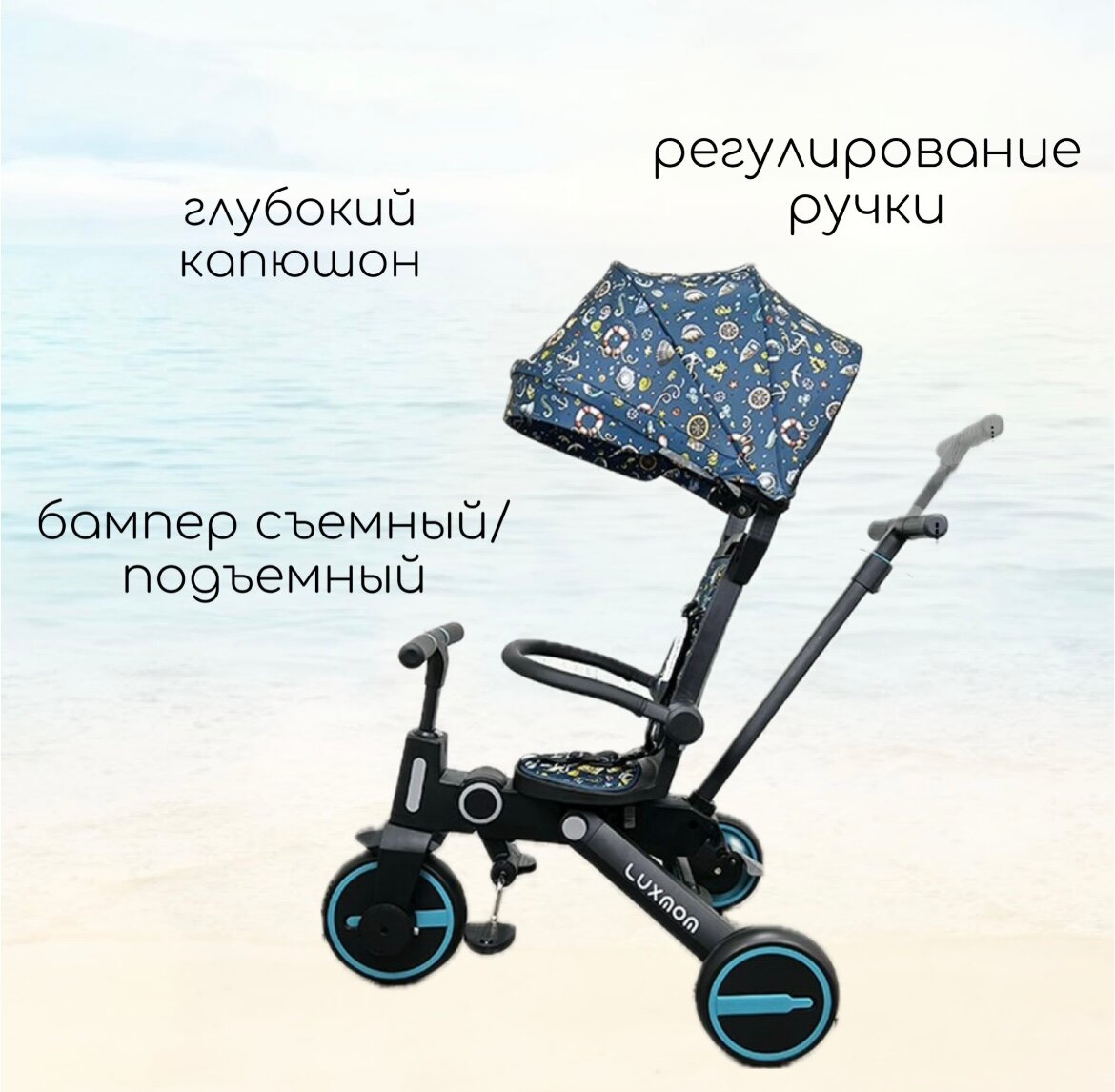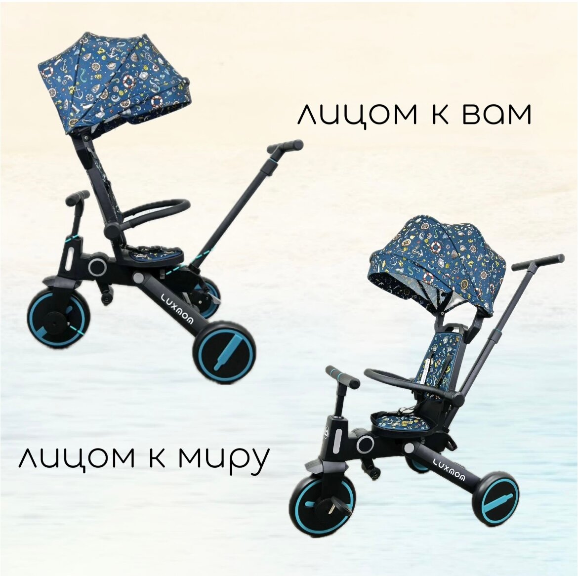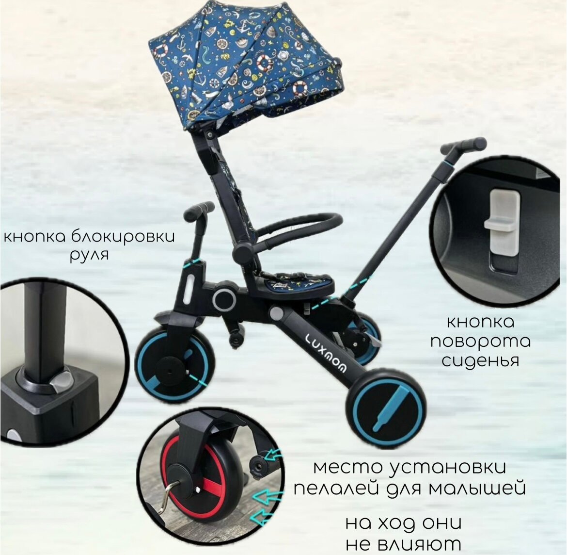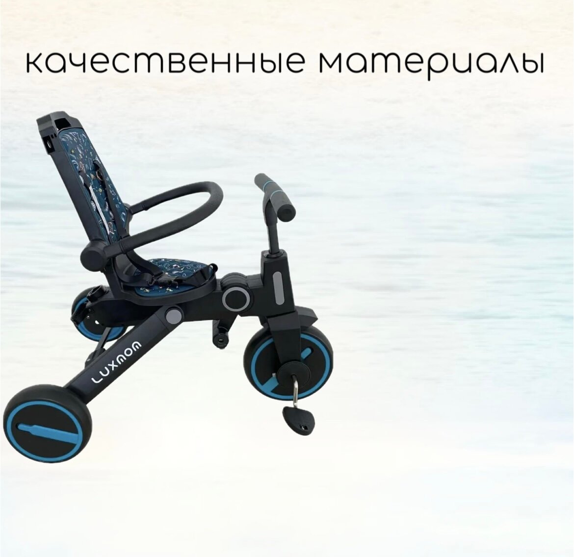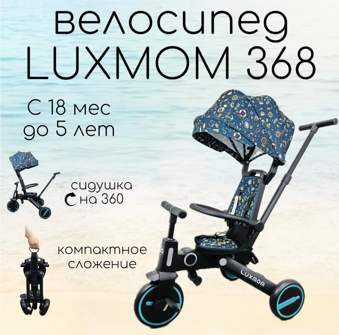 Трехколесный велосипед Luxmom 368 складной, поворот сидения, синий