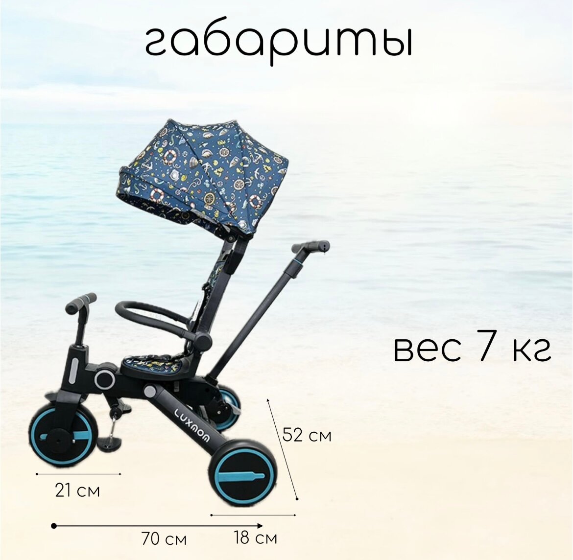 Велосипед складной 3-колесный LUXMOM 368 синий, складной, повортное сиденье, съемная родительская ручка