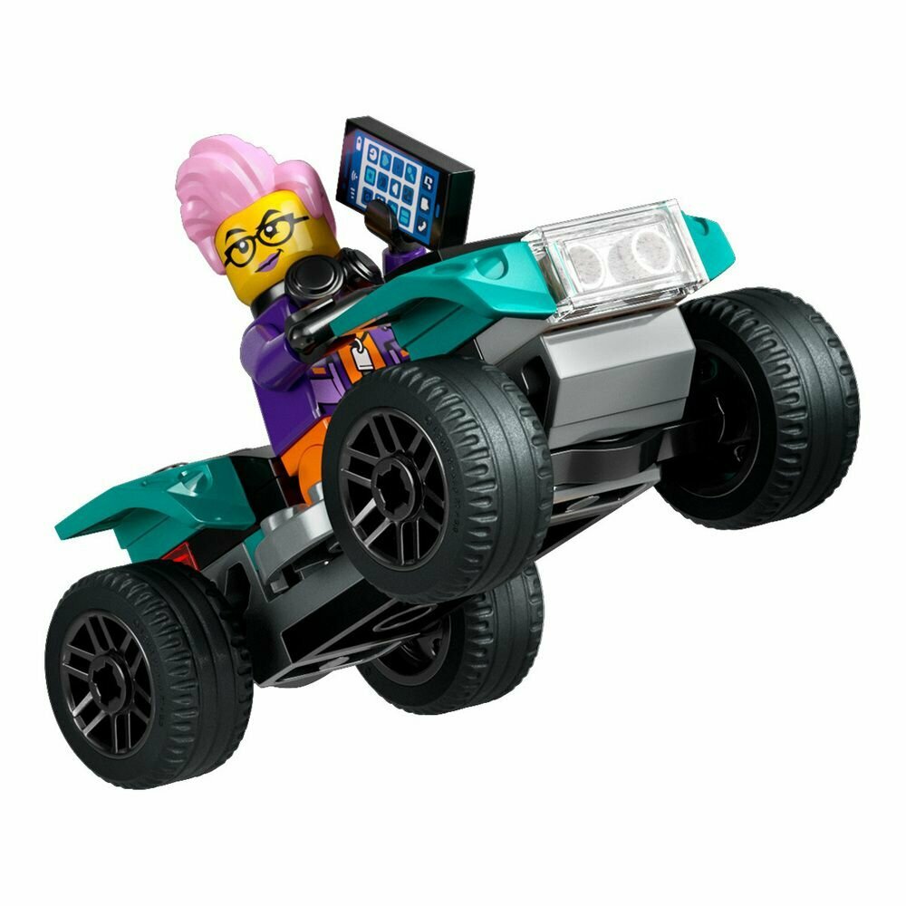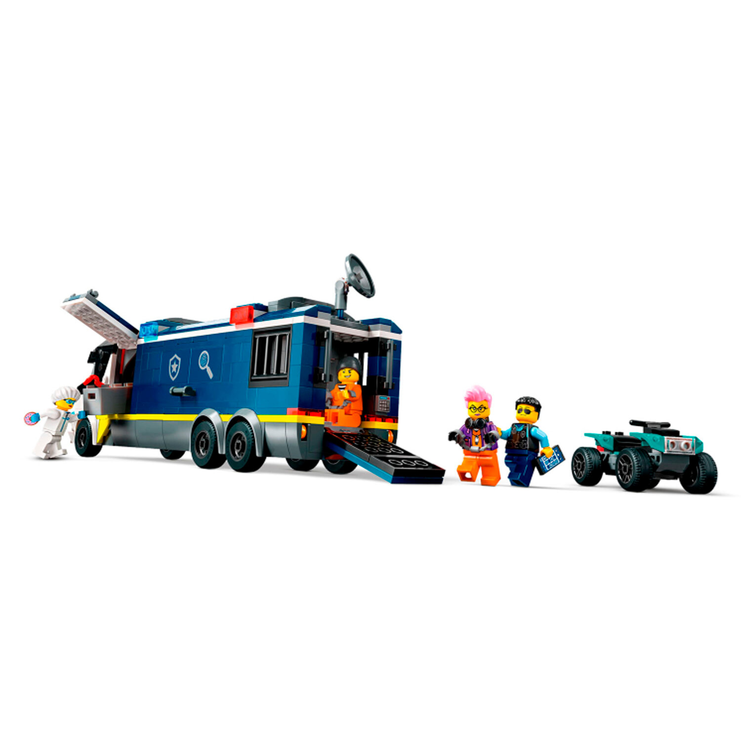 | Комплектация | игрушка-грузовик, которая открывается и показывает двухуровневую криминалистическую лабораторию с рабочими местами, картой, экранами видеонаблюдения, микроскопом, кофеваркой и тюрьмой. В набор также входят криминалистическая сцена, игрушка-квадроцикл, 2 минифигурки полицейского, 1 ученого и 2 мошенника |