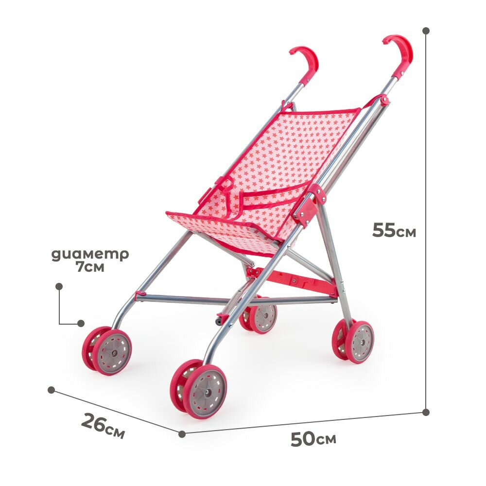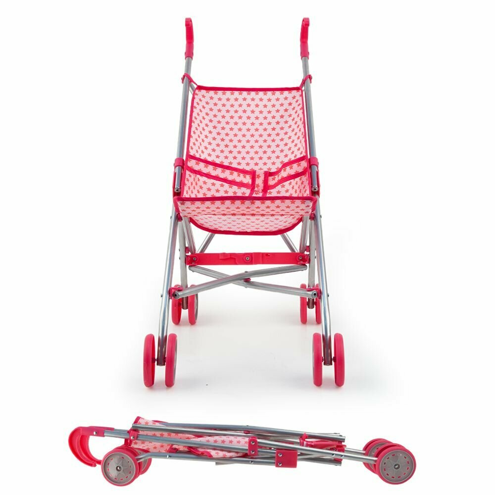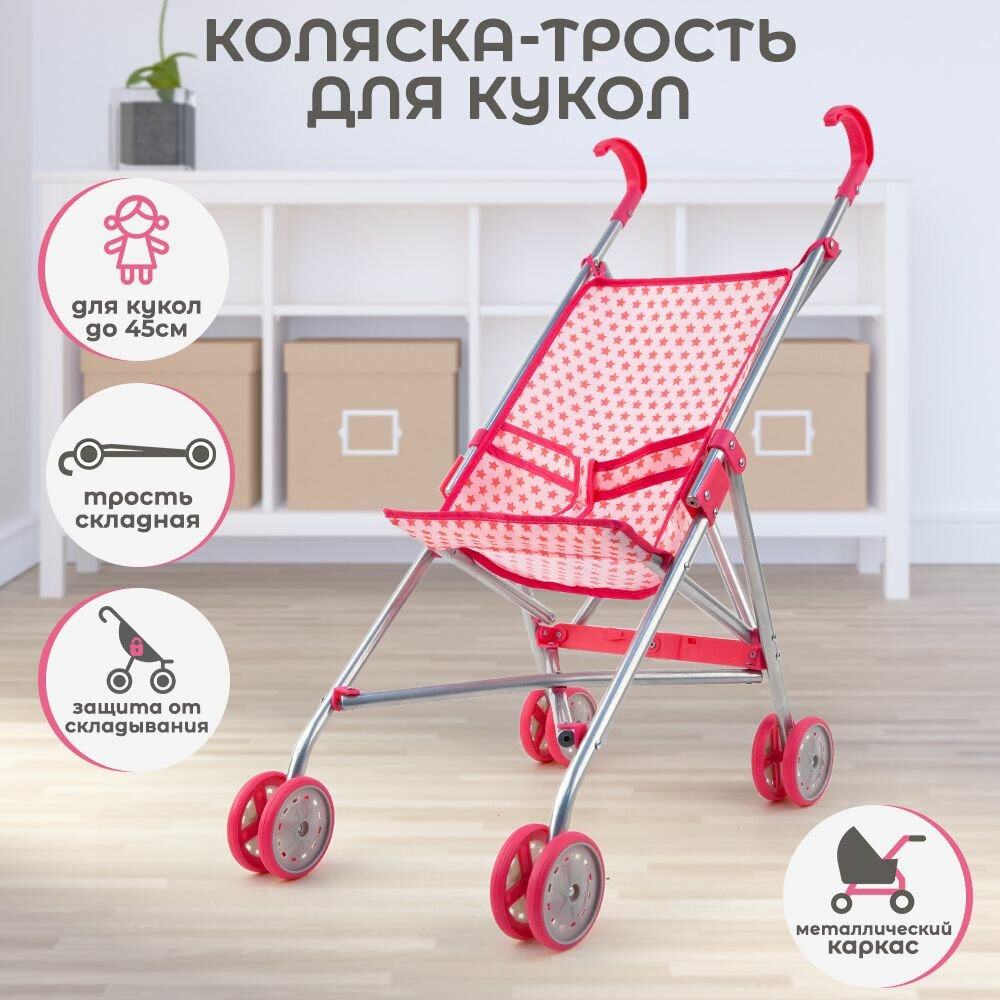 Коляска-трость для кукол розовая со звездочками в пакете