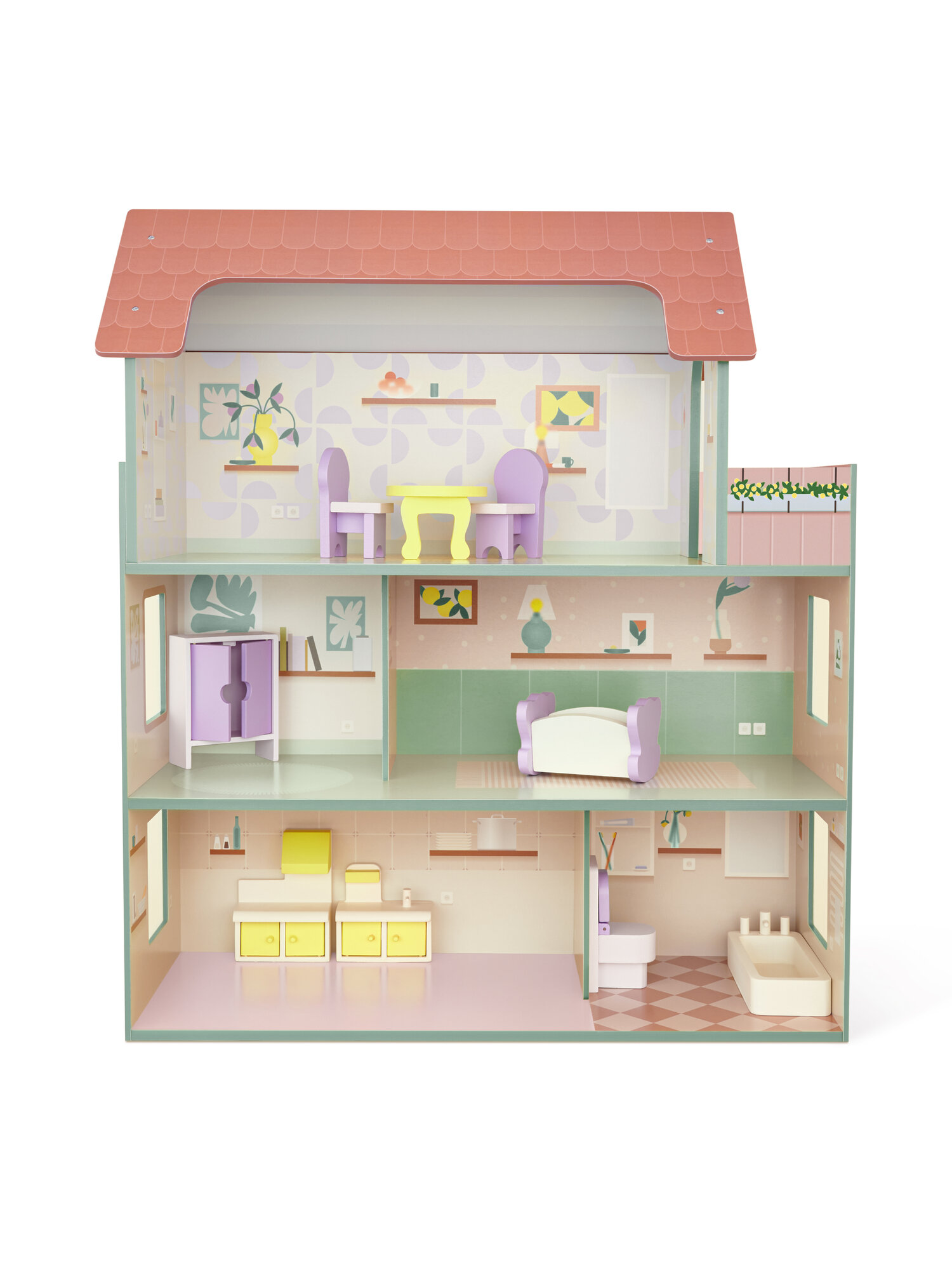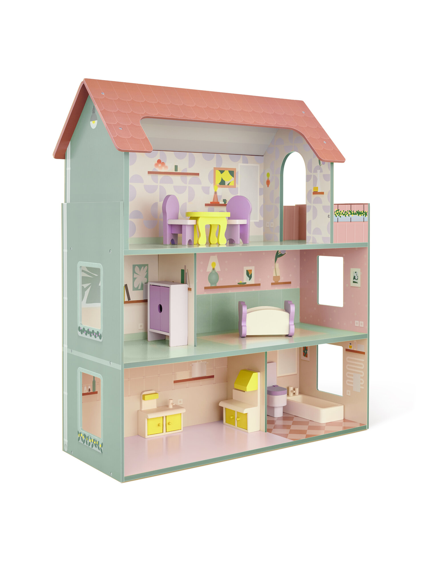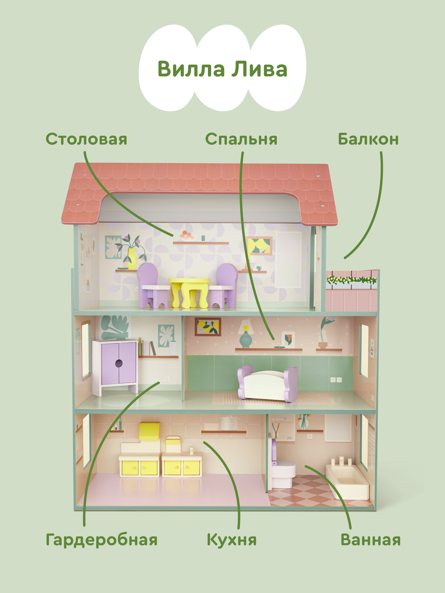 Купить Деревянный кукольный домик JUNION Вилла Лива, 60х27х70 см, 5 комнат, мебель в комплекте