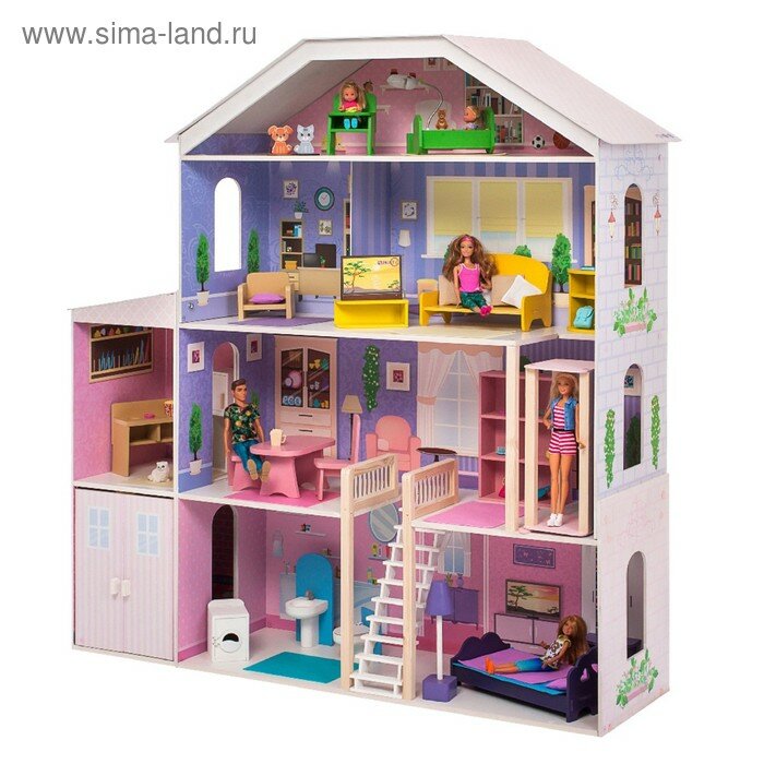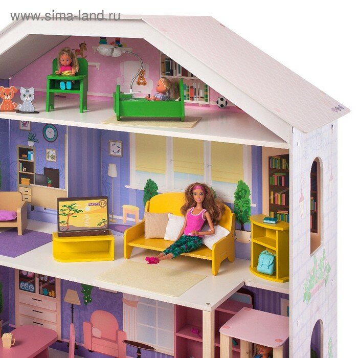 | Дополнительная информация | в комплекте: 23 предметов мебели и аксессуаров; интерактивные элементы: лампа (световой эффект), телевизор (звук, свет); 1 лестница, лифт, гараж, 4 этажа, 6 комнат |