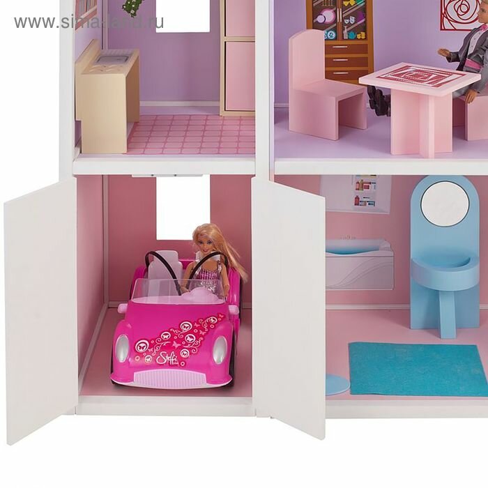 Купить Деревянный кукольный домик "Фантазия", с мебелью 23 предмета в наборе и с гаражом, для кукол 30 см PD316-03