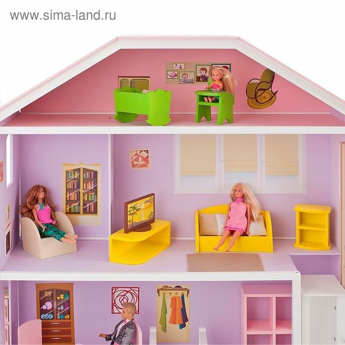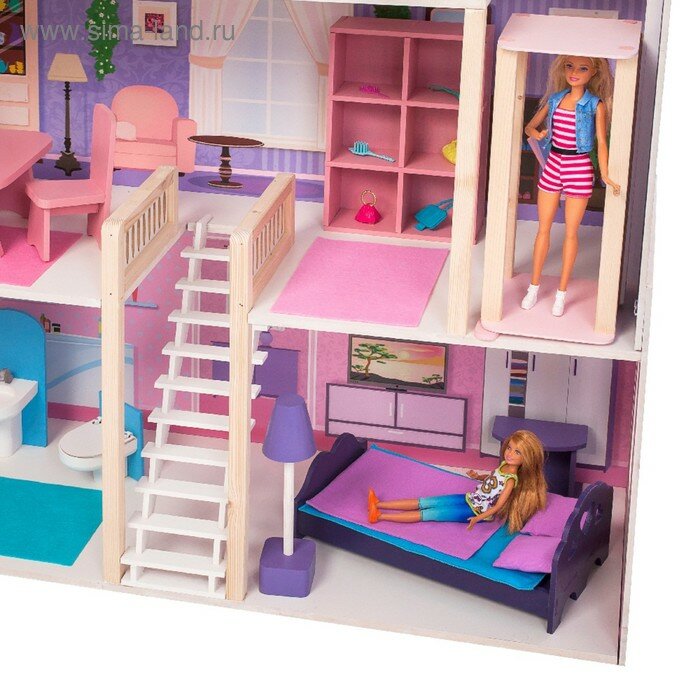 Деревянный кукольный домик "Фантазия", с мебелью 23 предмета в наборе и с гаражом, для кукол 30 см PD316-03 интересное: