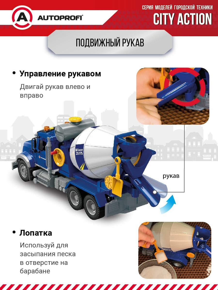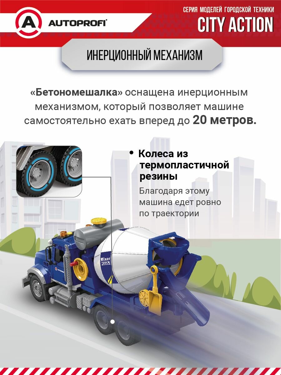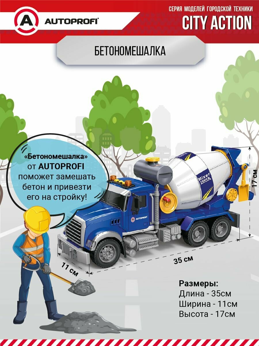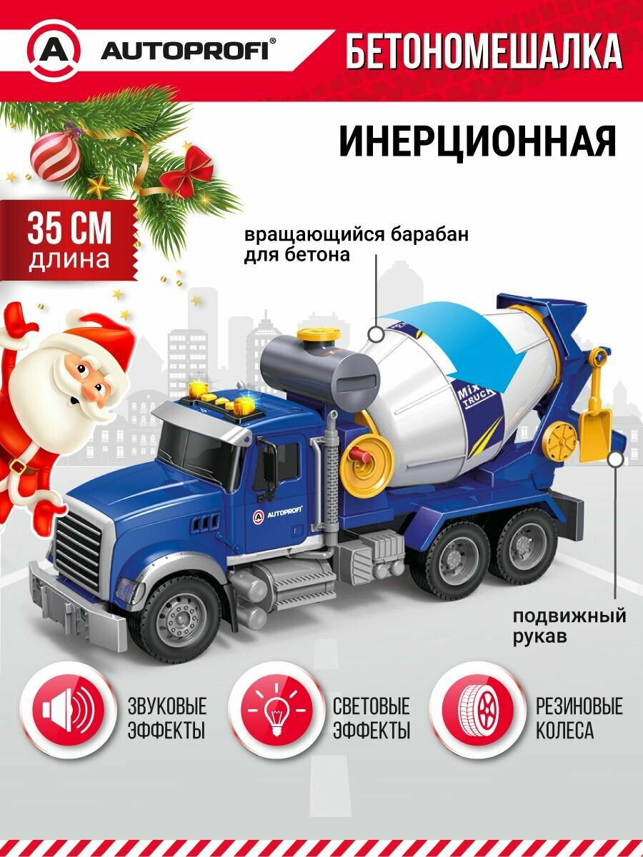 Машинка "Бетономешалка", инерционная, с подвижными деталями,35см, CA-035/MIXR, свет, звук, (игрушки для мальчиков) интересное: