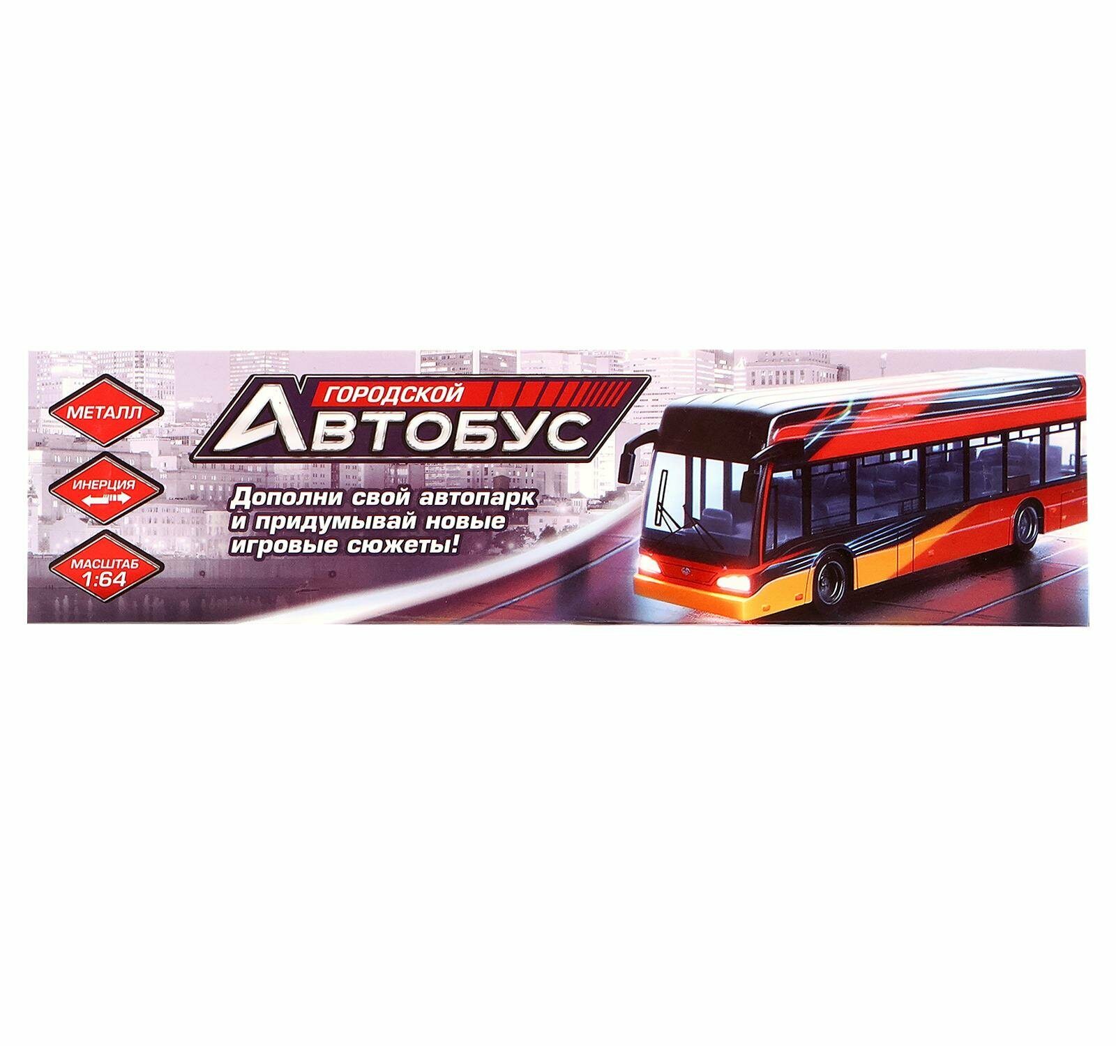 Автобус металлический Городской транспорт, инерционный, масштаб 1:64, цвет красный Автоград 199726 .
