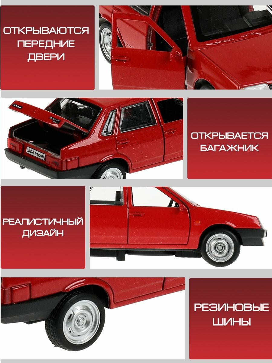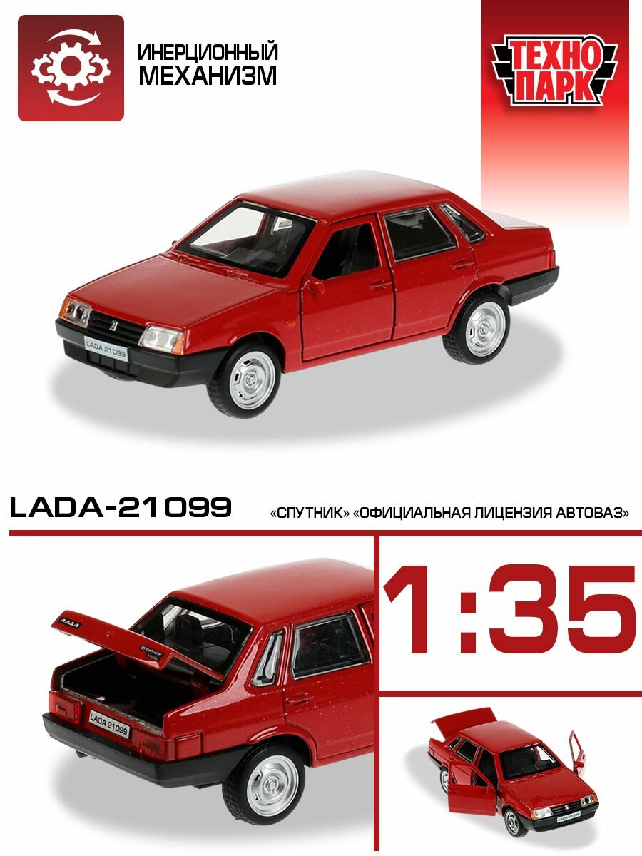 Купить Машинка детская Лада ВАЗ 21099 Спутник 12 см, Технопарк, темно-красная, открываются двери и багажник, металлическая