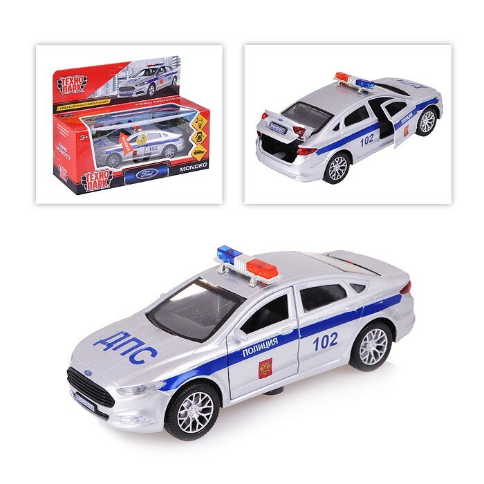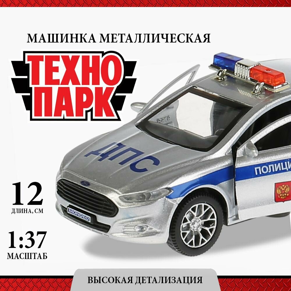 Купить Машинка детская Ford Mondeo Полиция 12 см, Технопарк, серебристая, открываются двери и багажник, металлический корпус