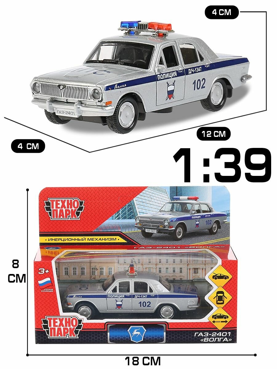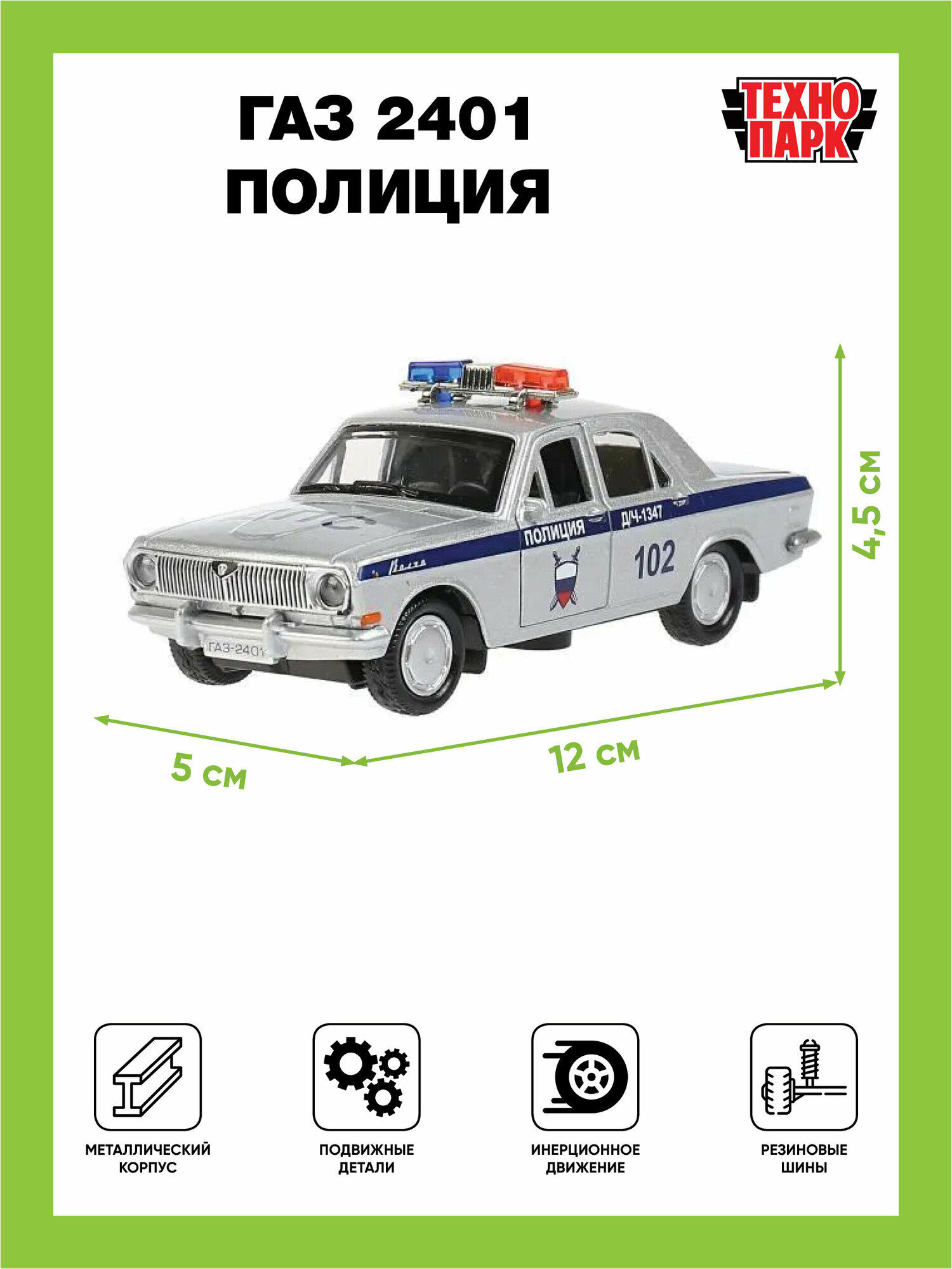 Машинка Технопарк Газ-2401 Волга Полиция металл , инерционный, серебристый 12см 2401-12POL-SR