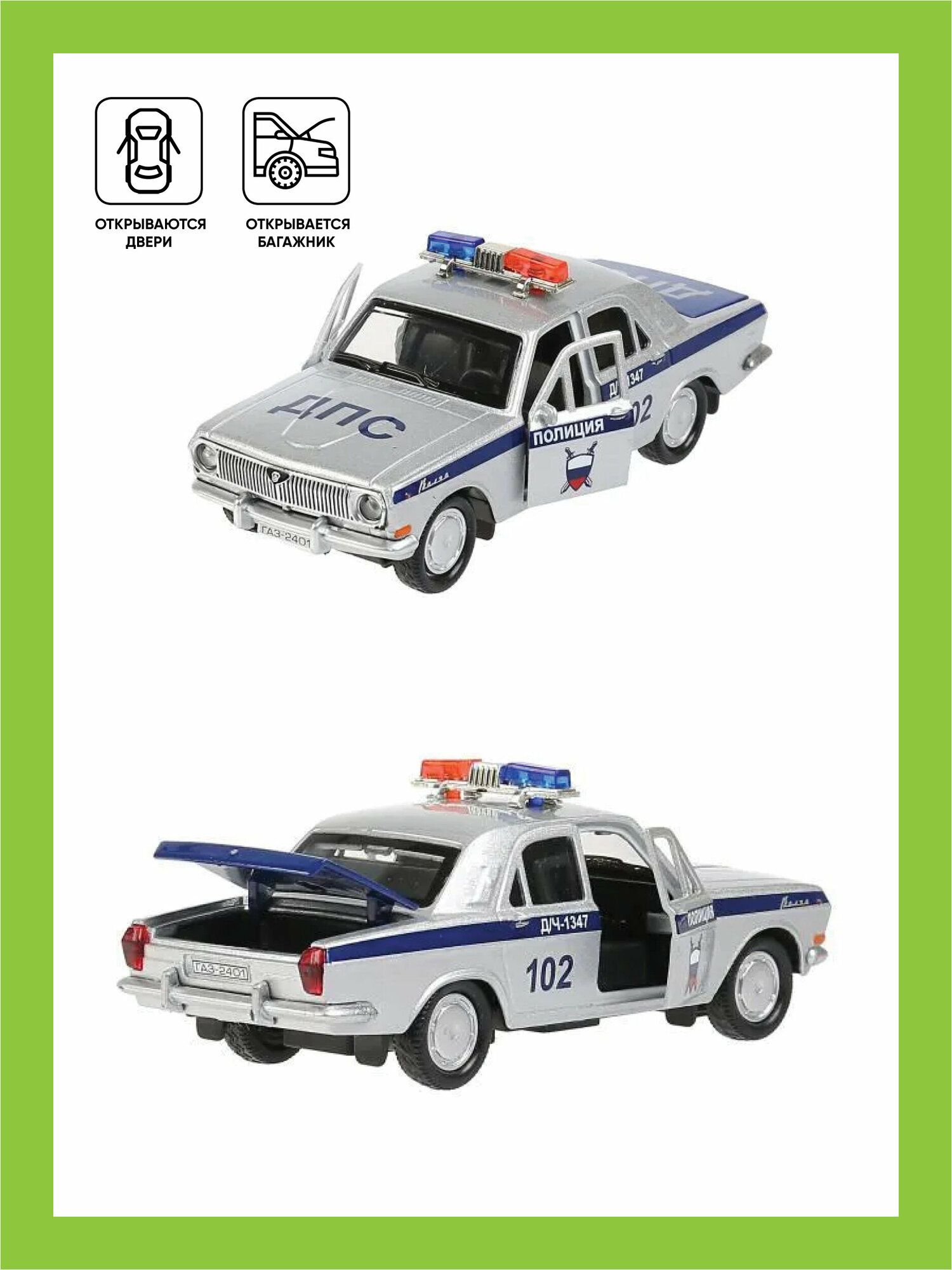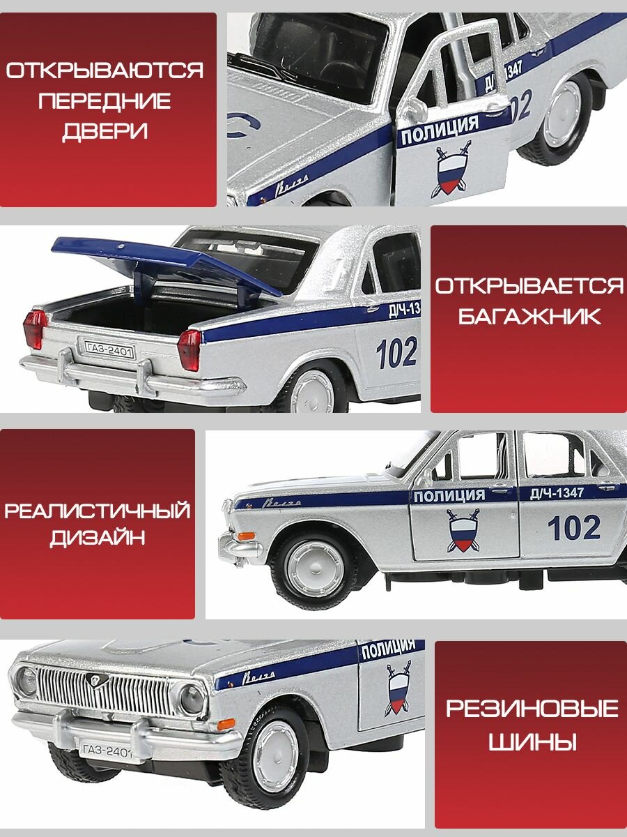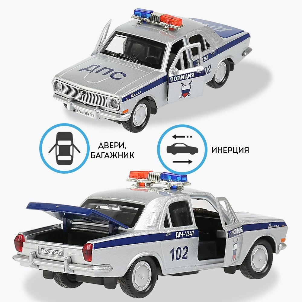 Купить Машинка детская Полиция ГАЗ-2401 Волга 12 см, Технопарк, серебристая, металлический корпус, открываются двери и багажник