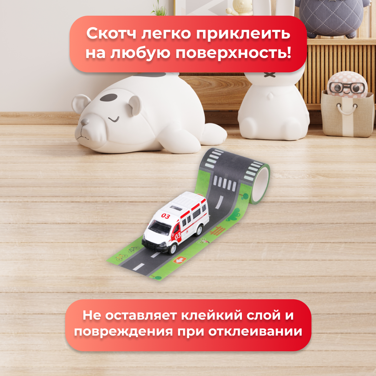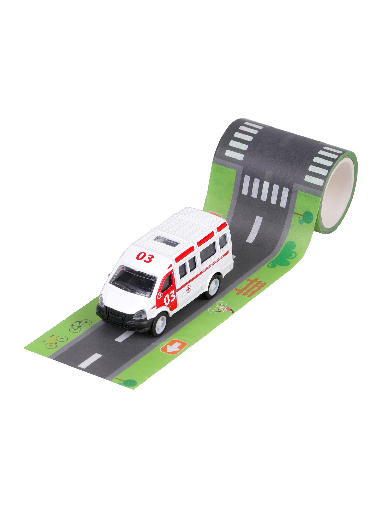 Набор Спецтранспорт Автодорога: металлическая машинка Скорая помощь и скотч-дорога