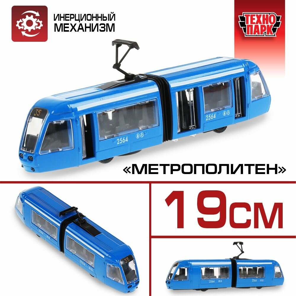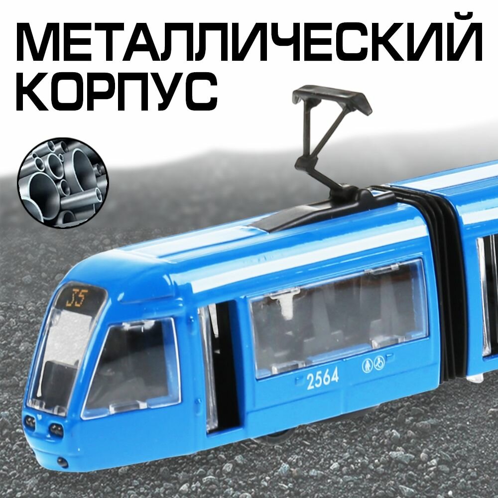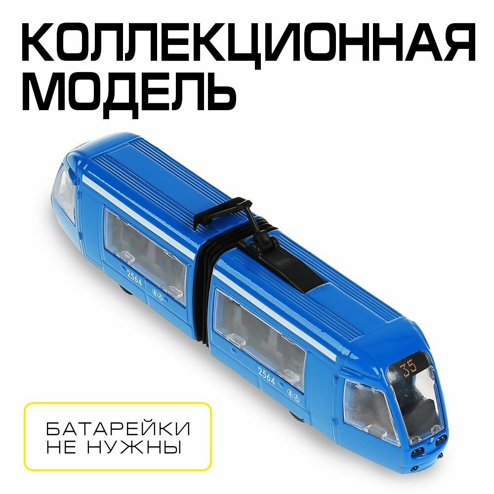 Купить Машинка детская Трамвай с гармошкой 19 см, Технопарк, синяя, металлический корпус, инерция