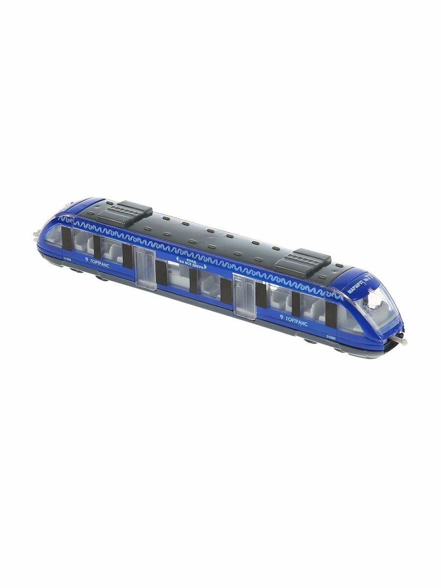 Машинка детская Трамвай с гармошкой 19 см, Технопарк, синяя, металлический корпус, инерция