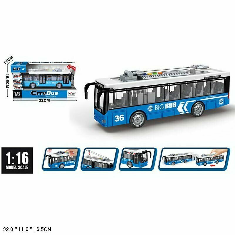 Троллейбус Технопарк пластиковый 31,5см, свет, звук, инерционный, в ассортименте SВ-14-02-GN-ОВ
