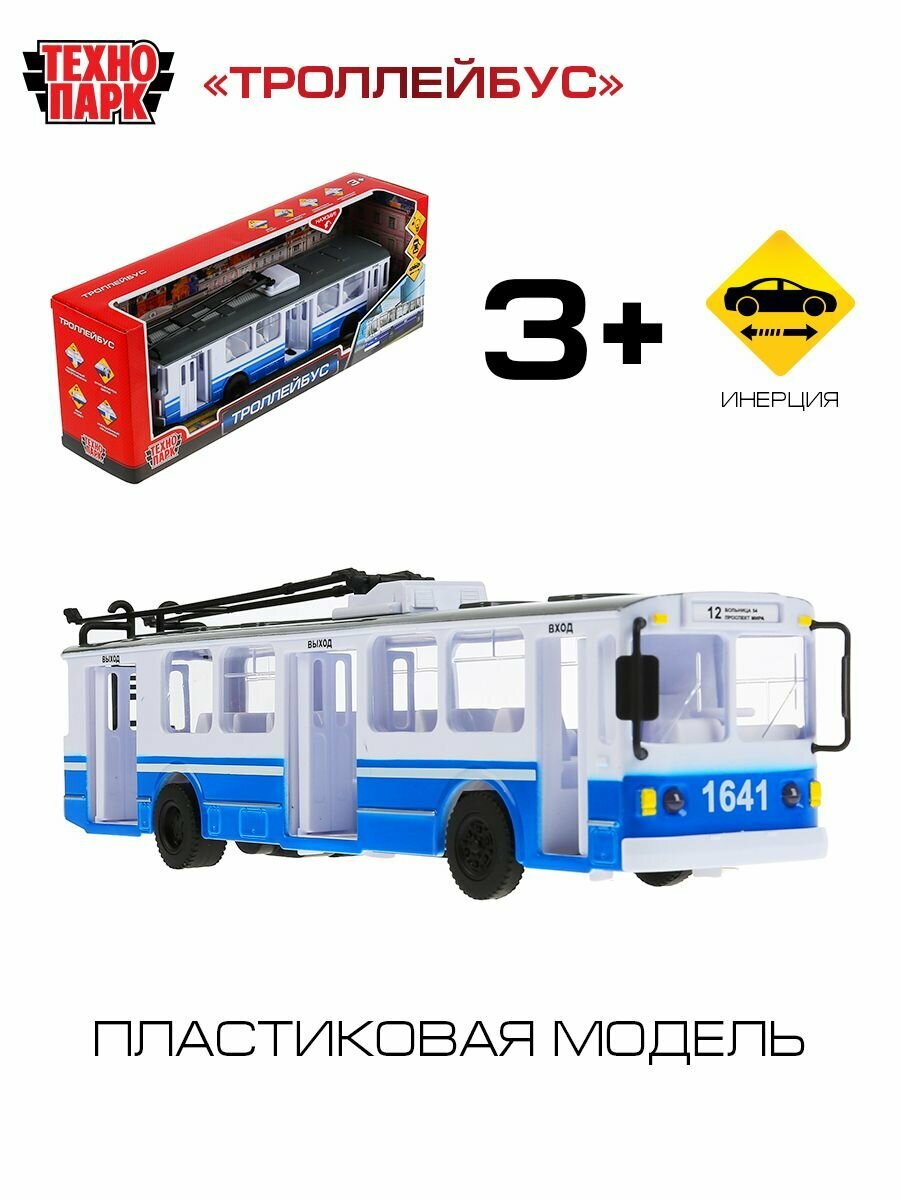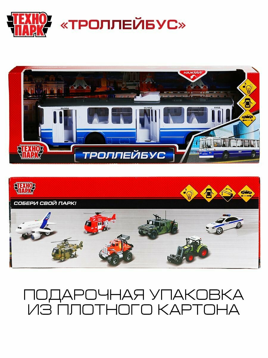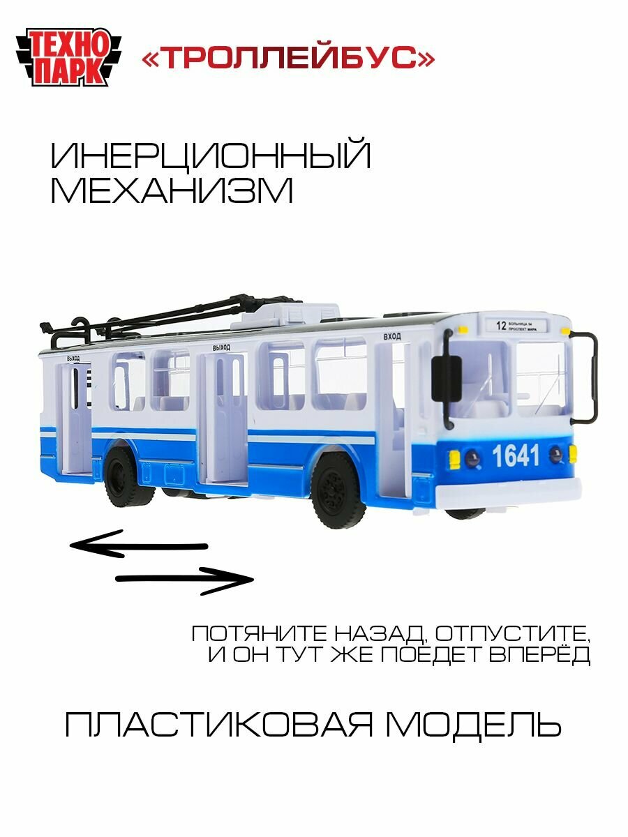 Машинка игрушка детская для мальчика Городской троллейбус Технопарк модель металлическая коллекционная инерционная с открывающимися дверьми 19 см