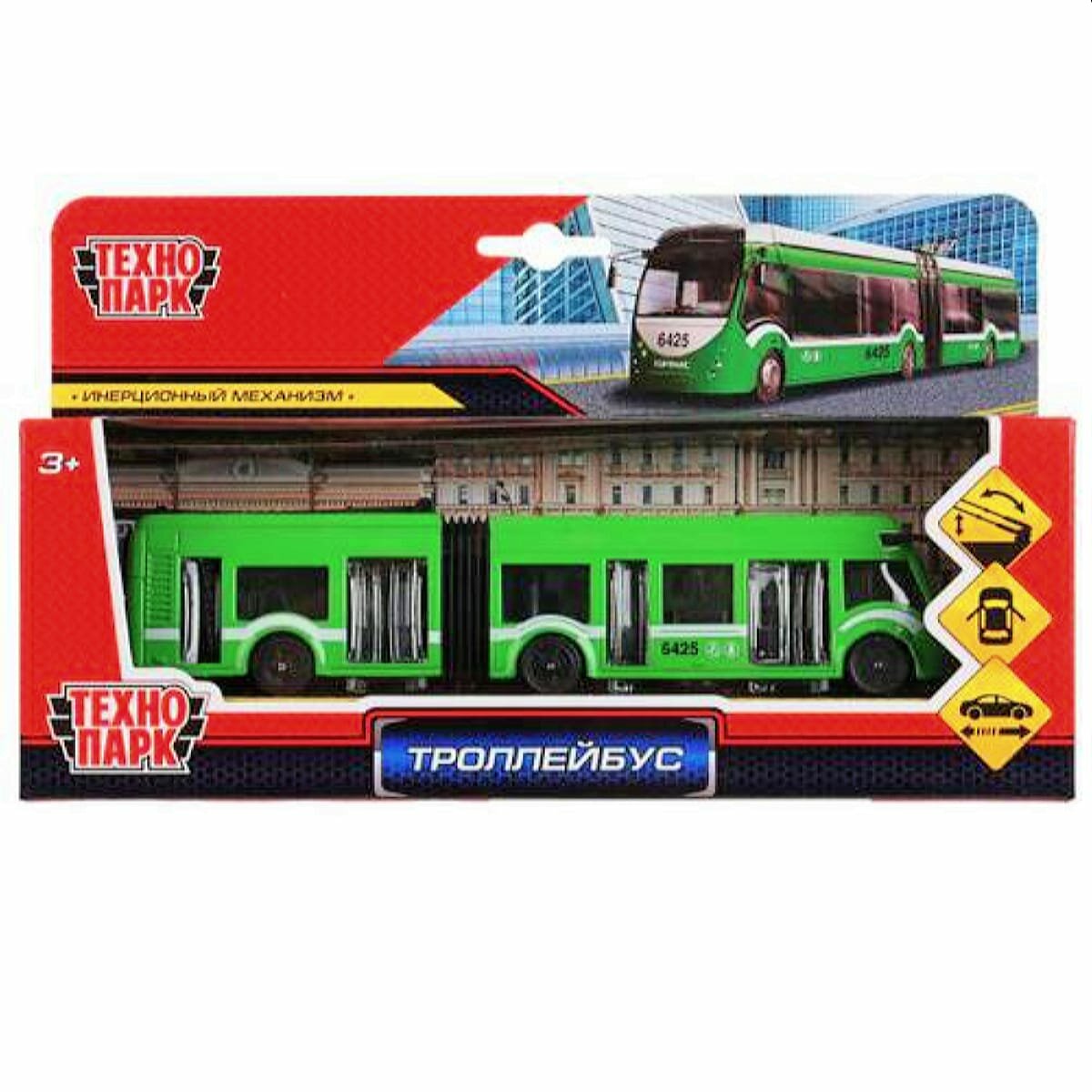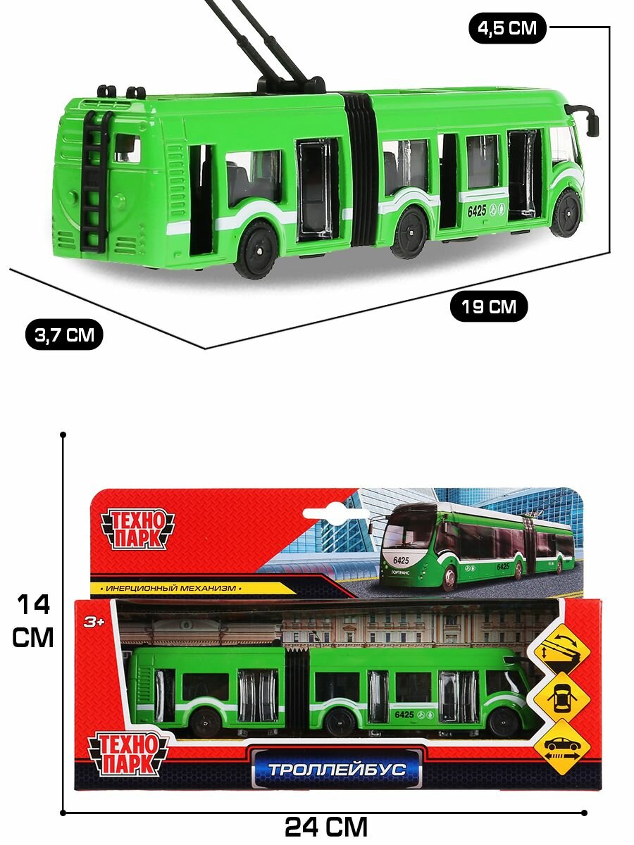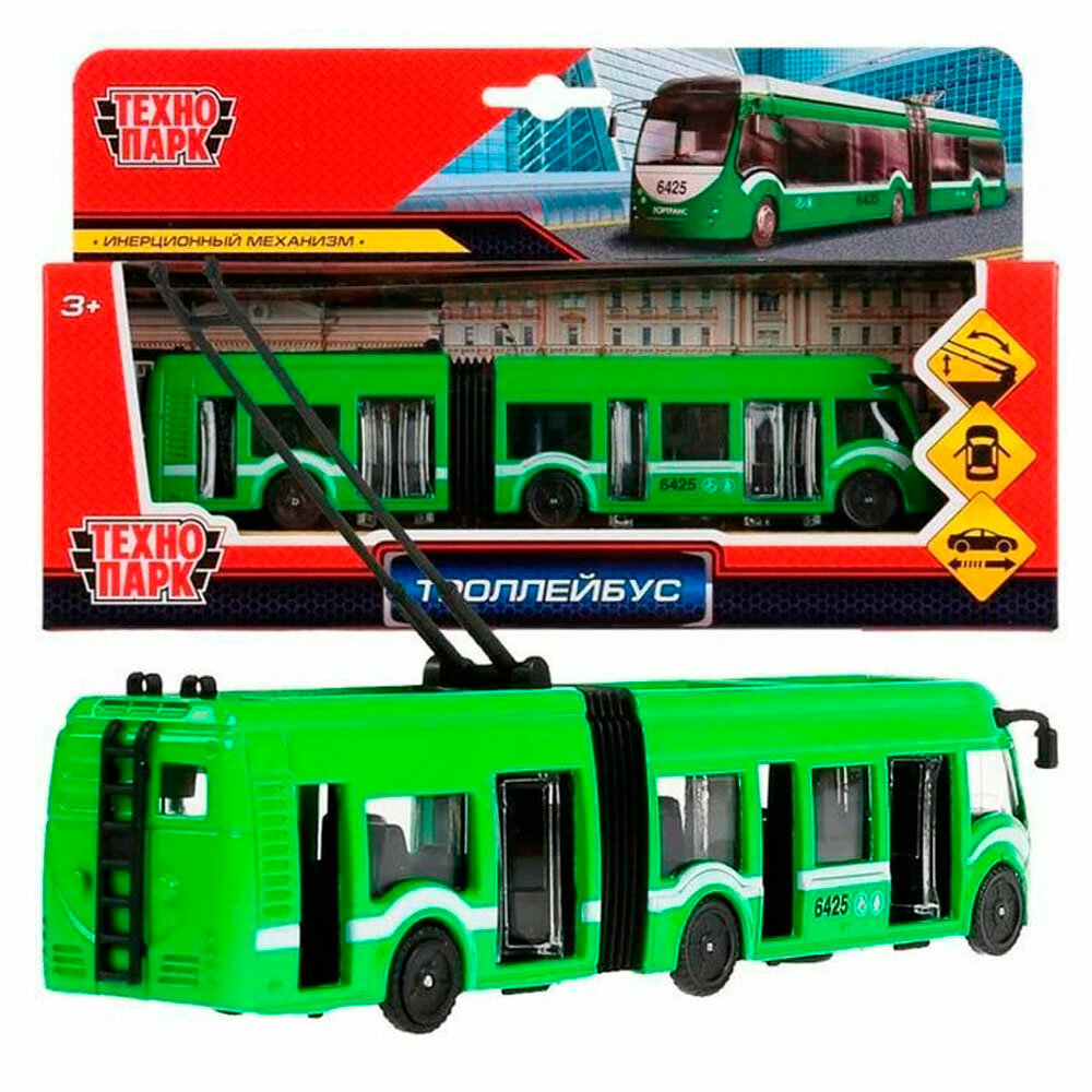 Троллейбус Технопарк пластиковый 31,5см, свет, звук, инерционный, в ассортименте SВ-14-02-GN-ОВ