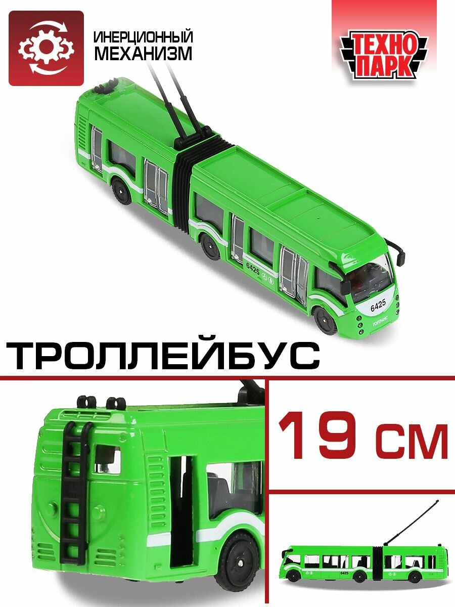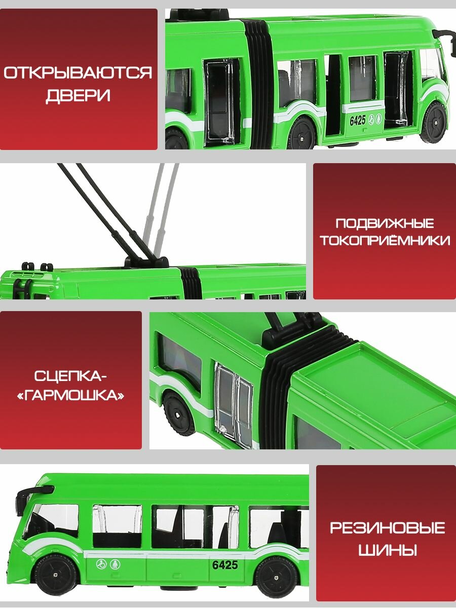 Машинка игрушка детская для мальчика Городской троллейбус Технопарк модель металлическая коллекционная инерционная с открывающимися дверьми 19 см