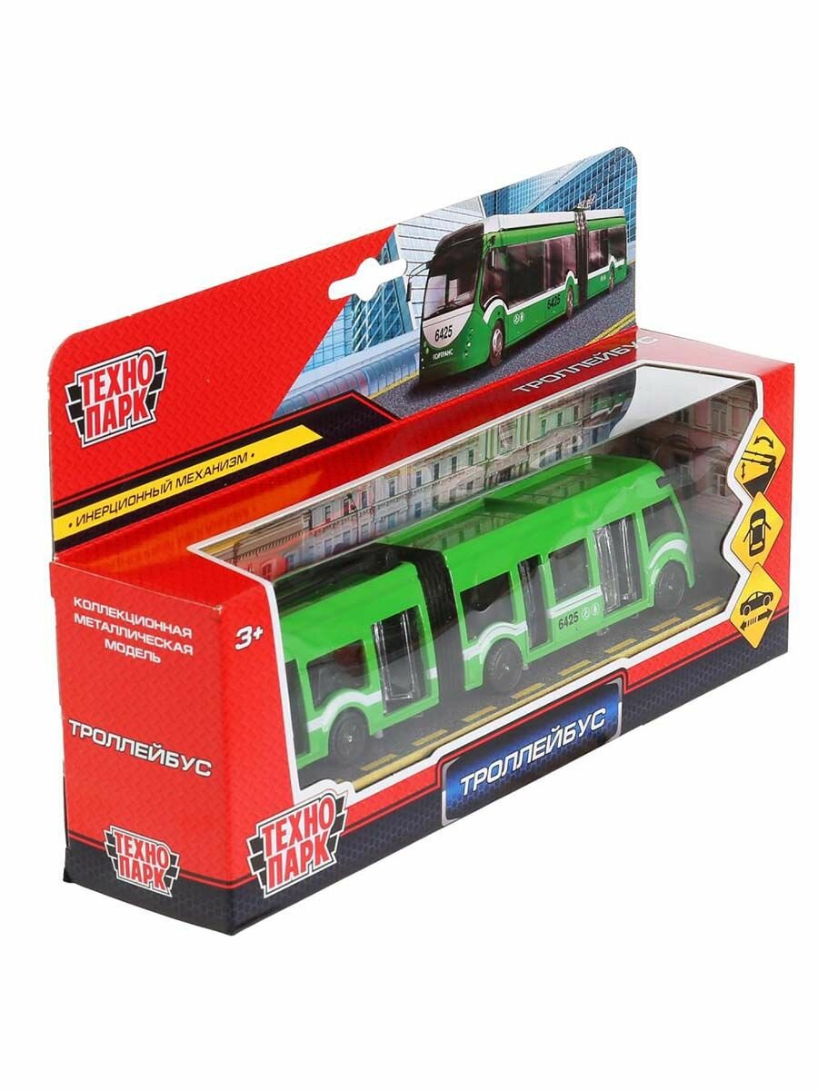Купить Модель Инерционная Технопарк Троллейбус новый с резинкой (19см, металл, открываются двери, в коробке) SB-18-11-GN-WB(NO IC), (Huada Toy Co.,Ltd)