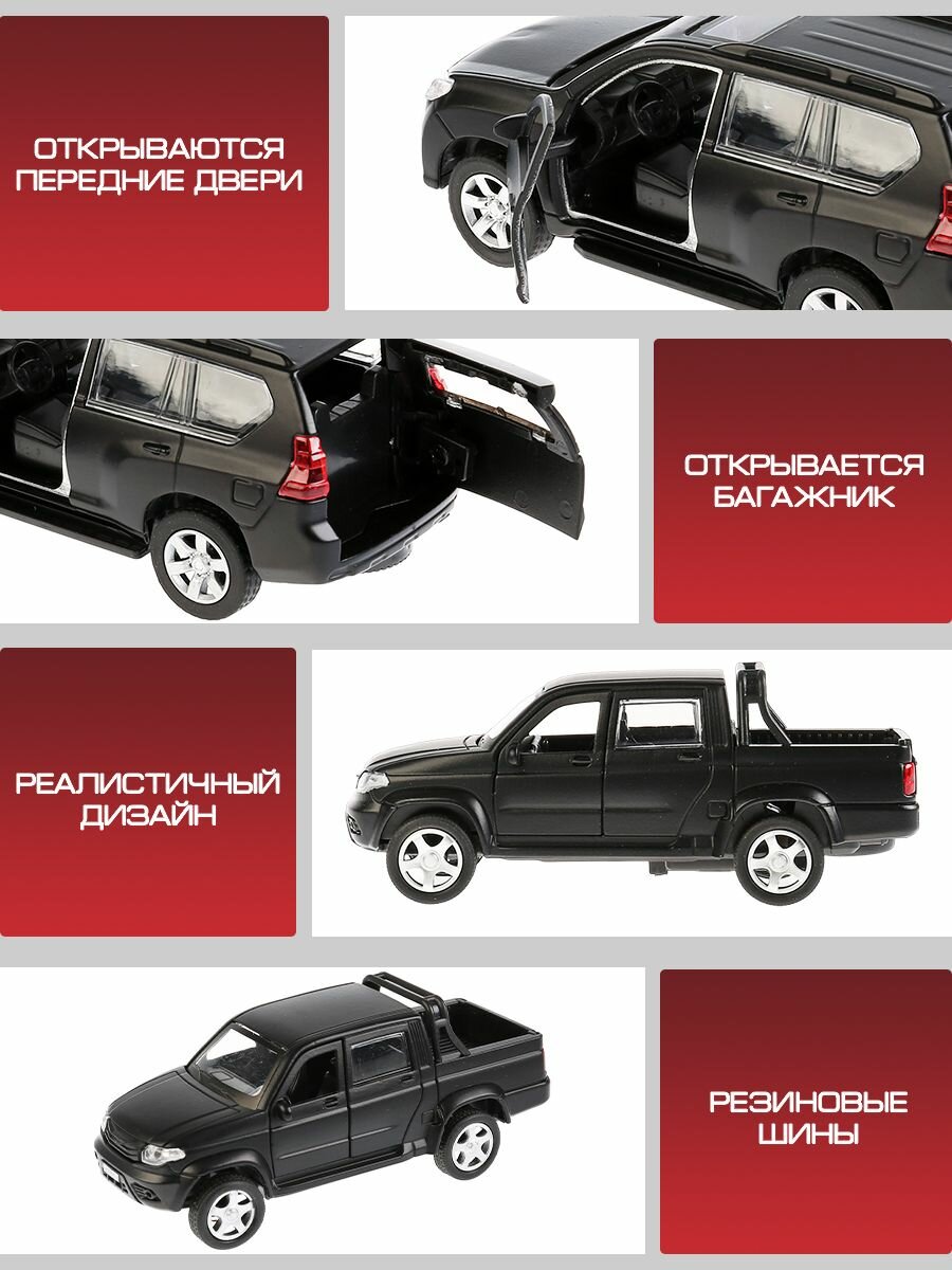 Купить Модель UAZ Pickup черный матовый 12см без света И звука Технопарк металл. открыв. двери, инерц.