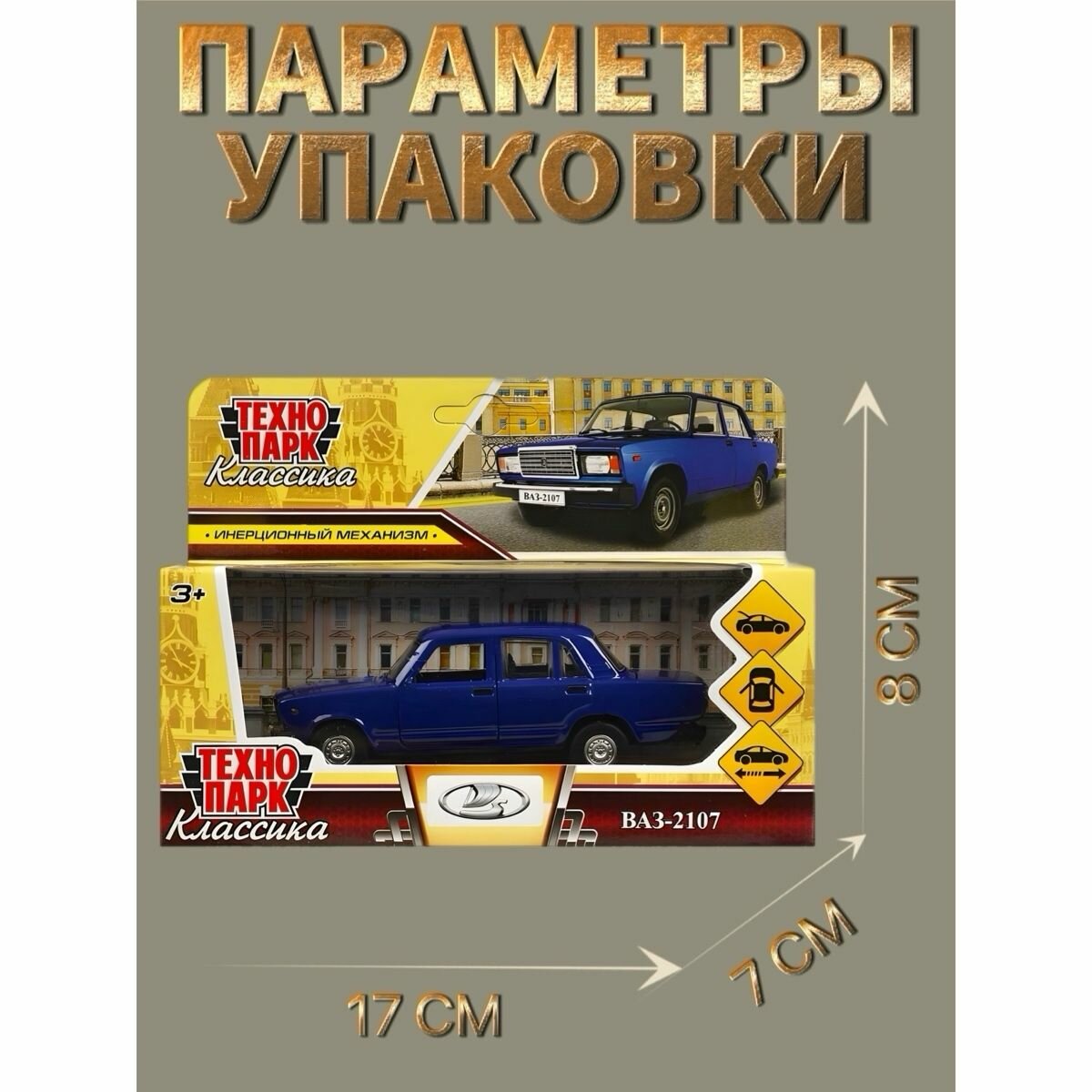 Машина ВАЗ-2107 12 см темно-синяя металл инерция Технопарк, 2107-12-BU1