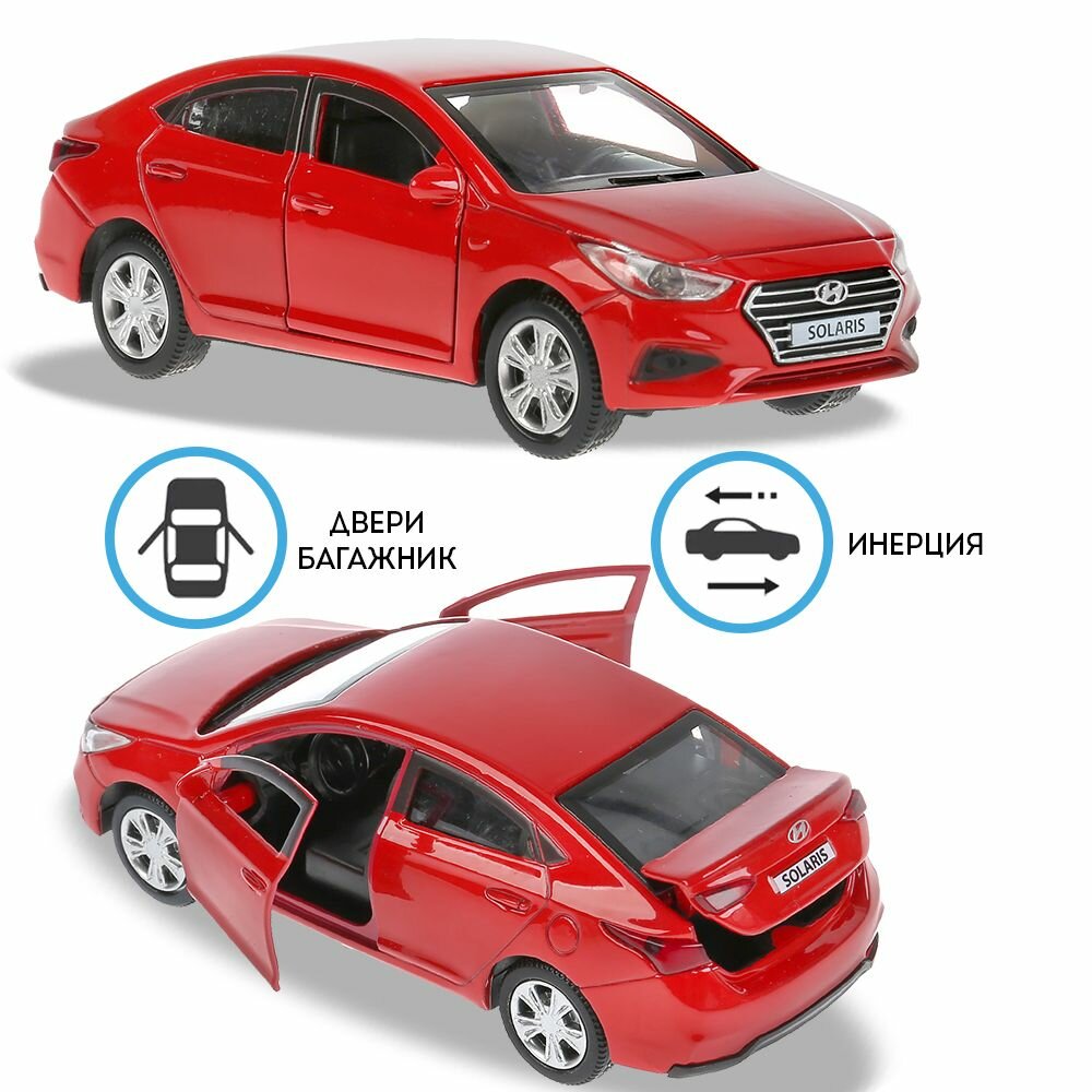 Купить Машинка детская Hyundai Solaris 12 см, Технопарк, красная, двери и багажник открываются, металлический корпус