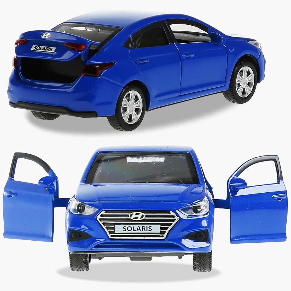 Купить Машинка детская Hyundai Solaris 12 см, Технопарк, синяя, двери и багажник открываются, металлический корпус