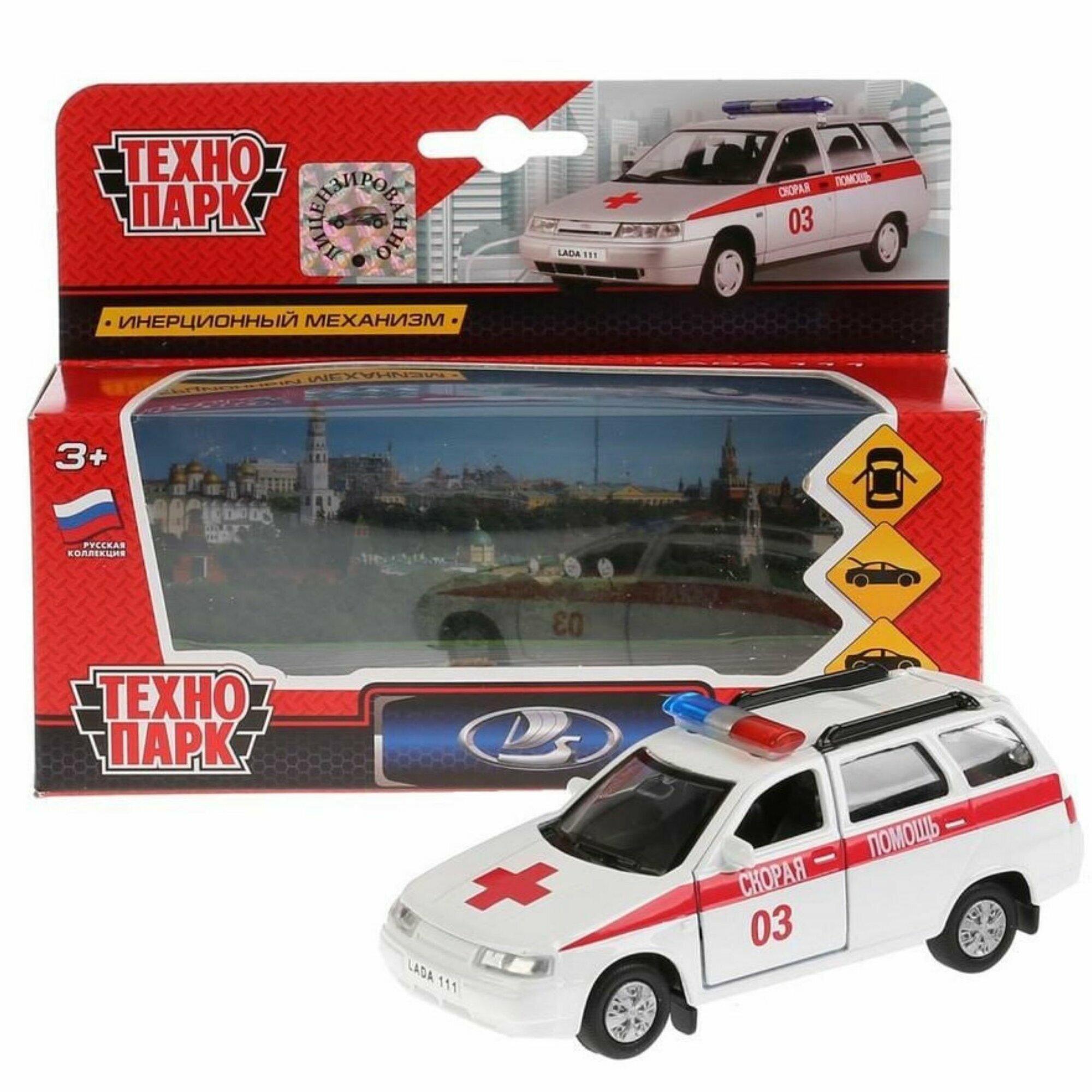 Машинка игрушка детская для мальчика Лада 111 Скорая Технопарк металлическая модель коллекционная инерционная с открывающимися дверьми белая 12 см