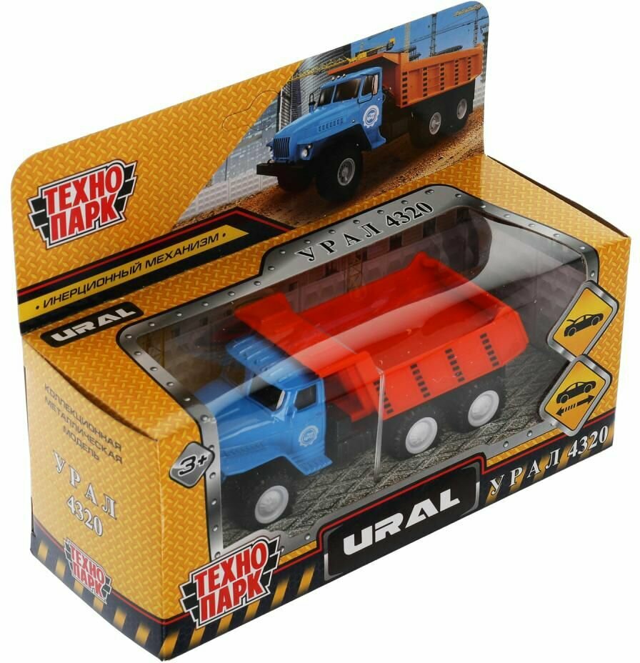 Купить Машина металлическая инерционная урал 4320 самосвал 12 см Цвет Оранжевый/Синий технопарк 2003C092-R