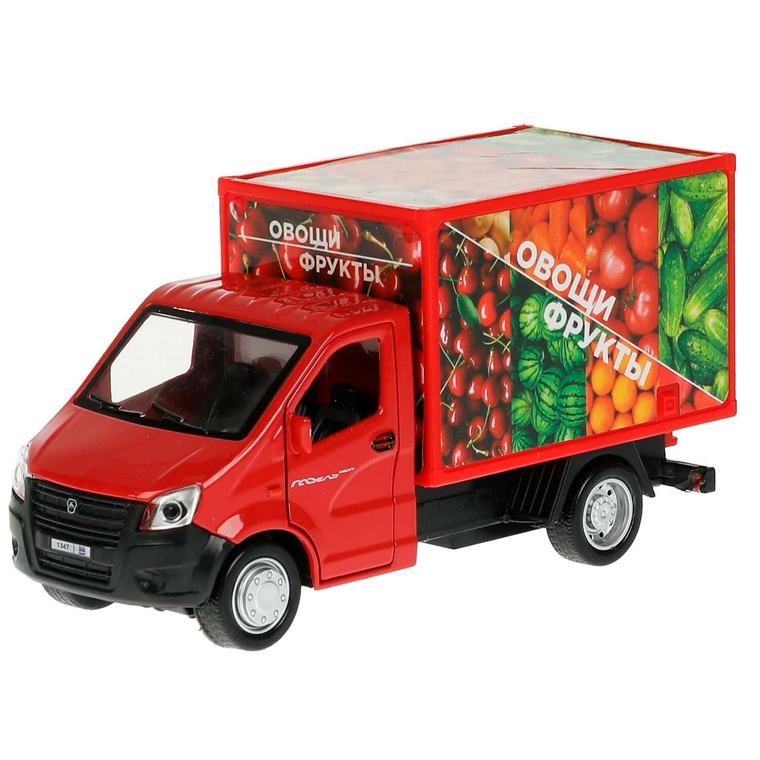 Купить Машинка детская грузовик Газель Некст Фрукты 14 см, Технопарк, открываются двери и прилавок, металлическая кабина