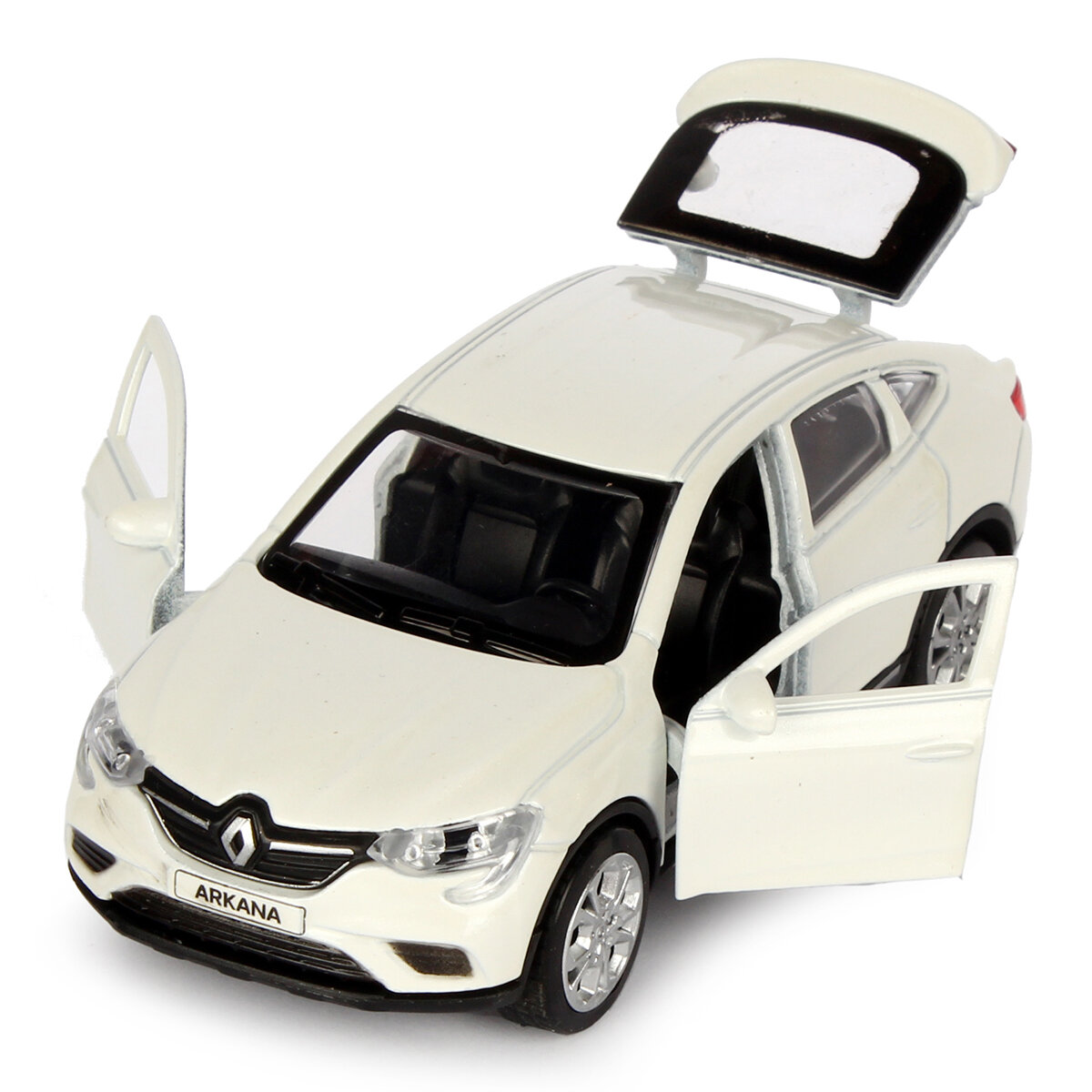 Купить Машинка детская Renault Arkana 12 см, Технопарк, белый, открываются двери и багажник, металлический корпус