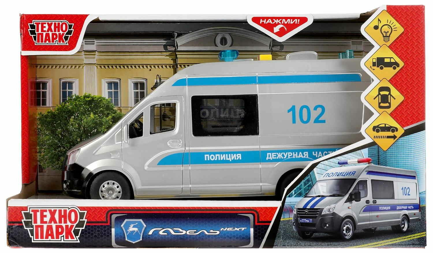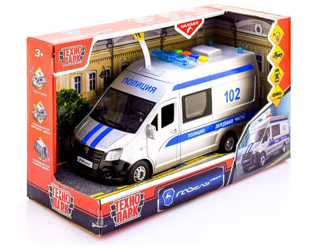 Технопарк Машина Газель Некст Полиция 22,5 см со светом и звуком, пластик NЕХТVАN-22РLРОL-WН с 3 лет