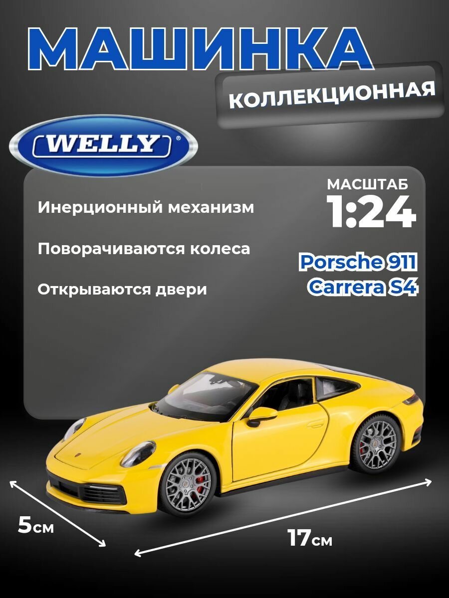 Купить Машинка WELLY 1:24 Porsche 911 Carrera S4, желтый