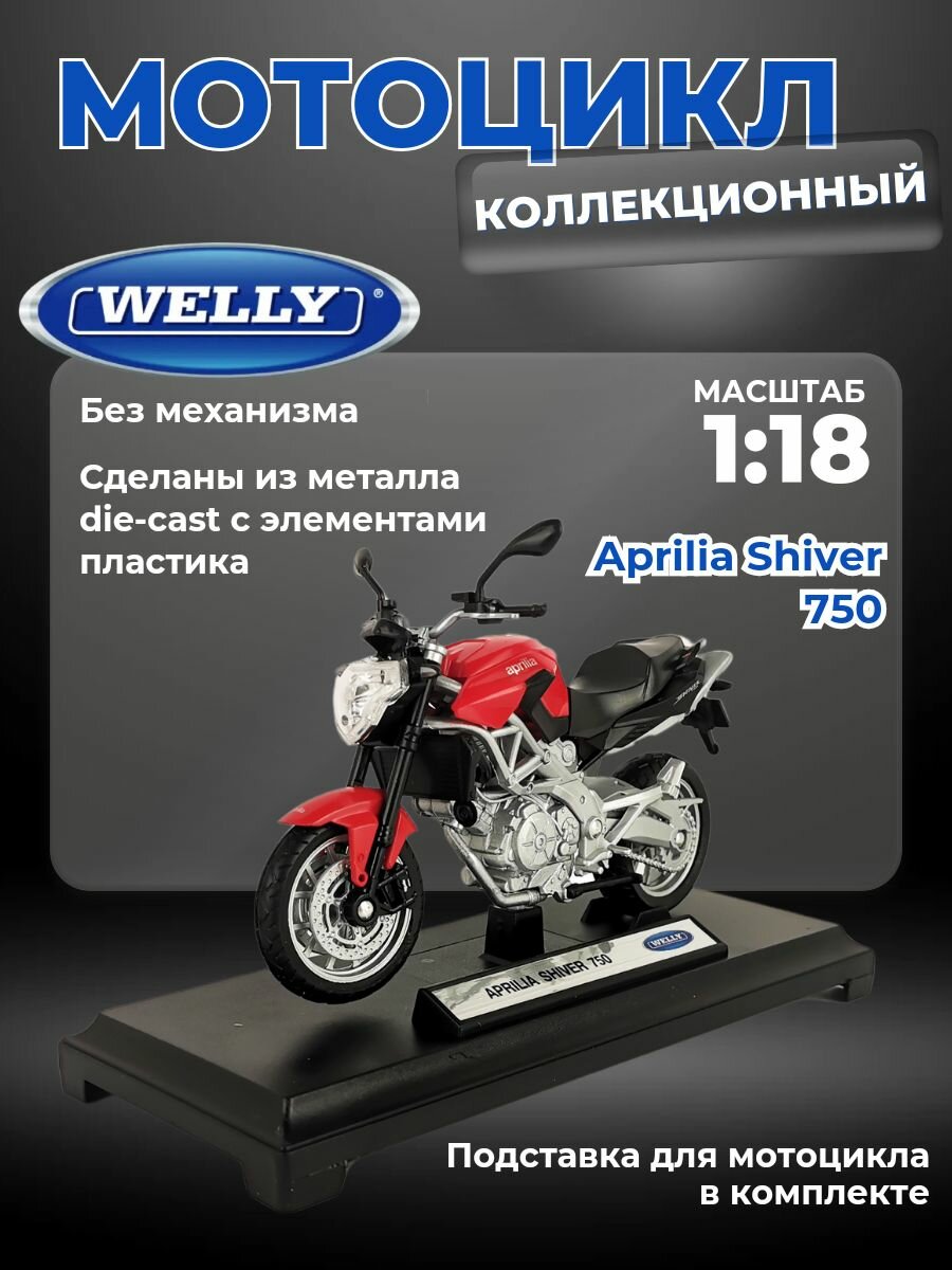 Мотоцикл Welly металлическая модель мотоцикла Aprilia Shiver 750, масштаб 1/18