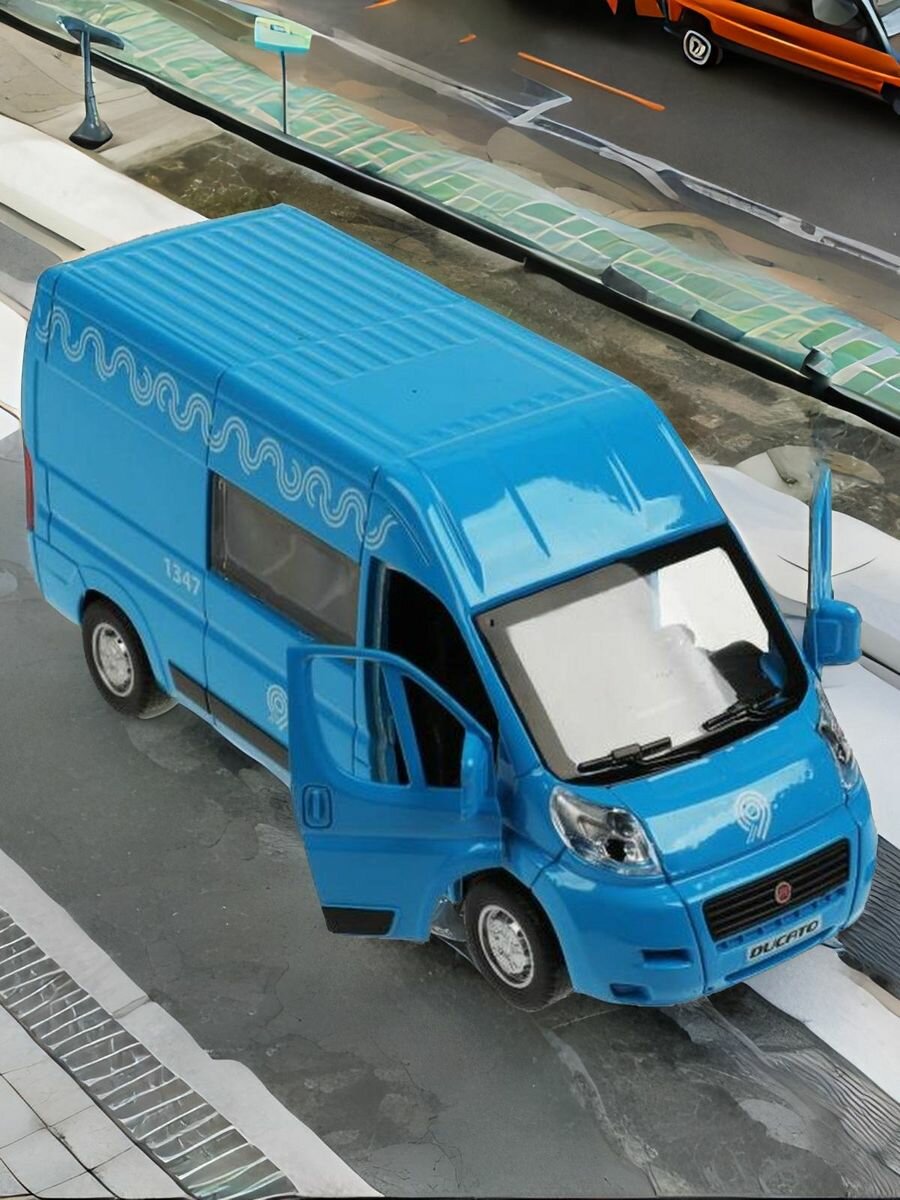 Машинка игрушка детская для мальчика Fiat Ducato Технопарк детская модель металлическая коллекционная инерционная с открывающимися дверьми синий 14 см