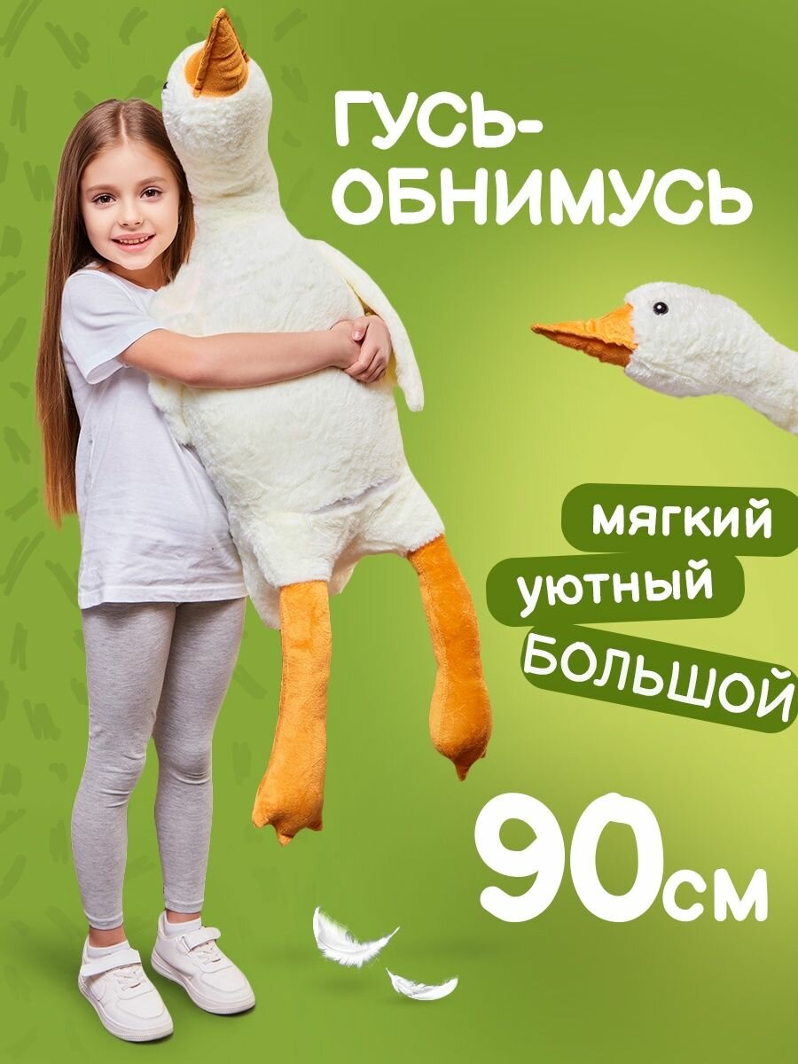 Купить Мягкая игрушка-антистресс Гусь-обнимашка, гусь-обнимусь белый, 90 см