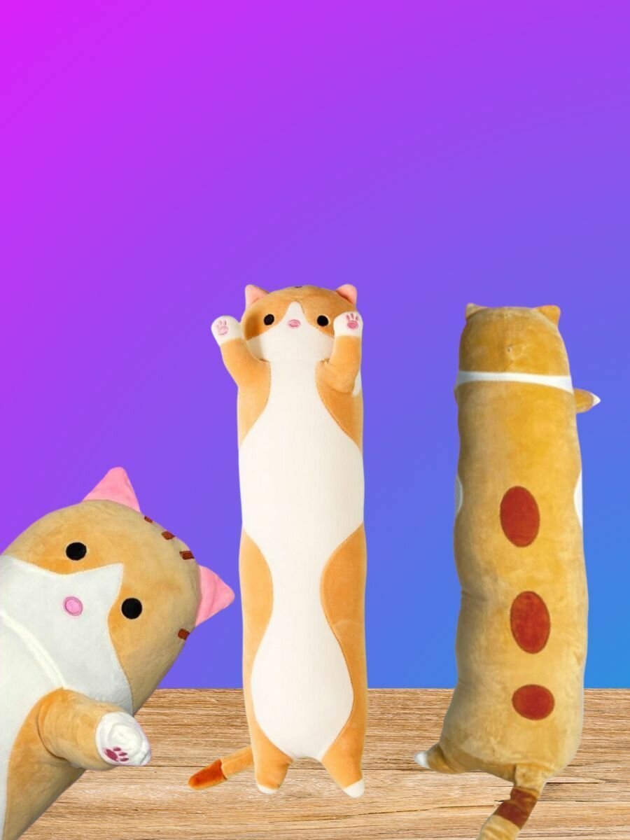 Мягкая игрушка-подушка длинный кот батон розовый антистресс 90см