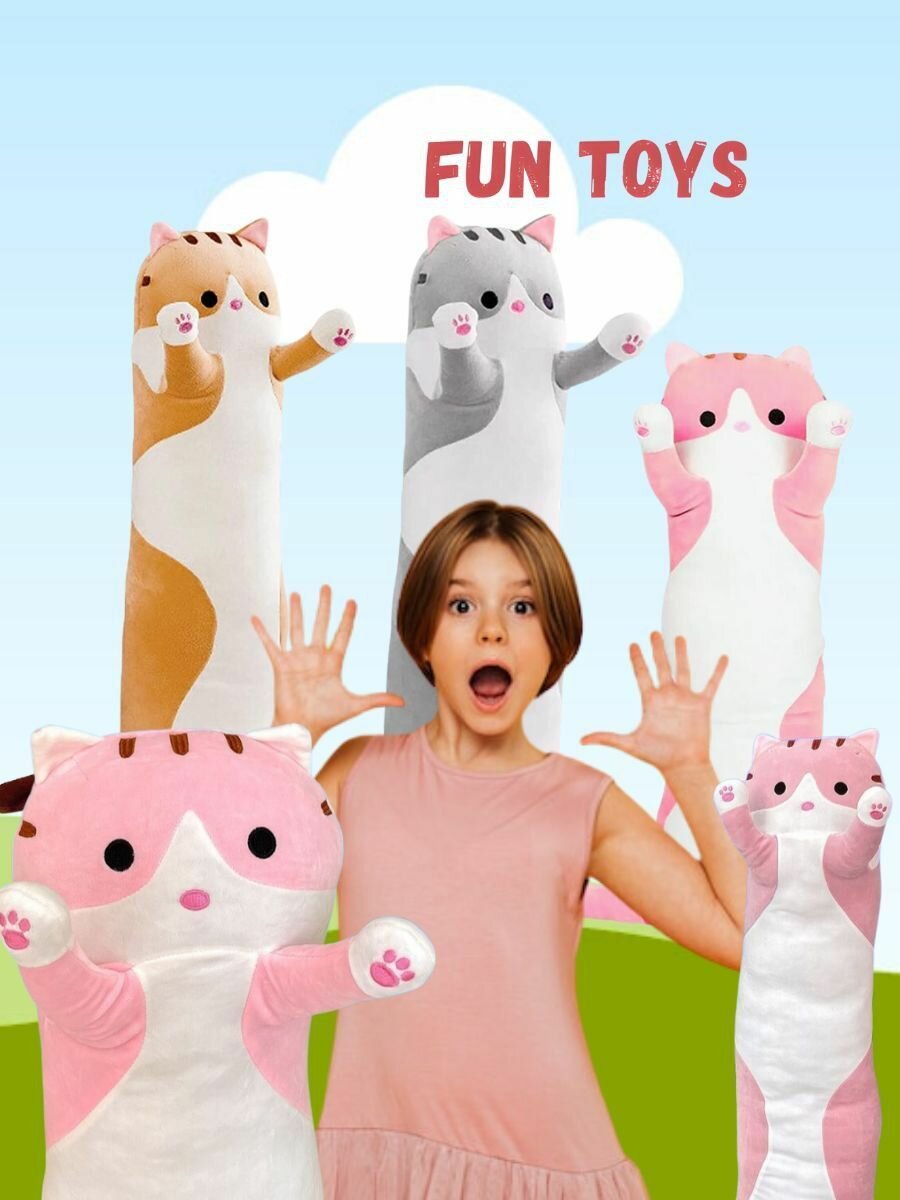 Кот-батон 70см, мягкая игрушка-подушка, антистресс, розовый, 3+