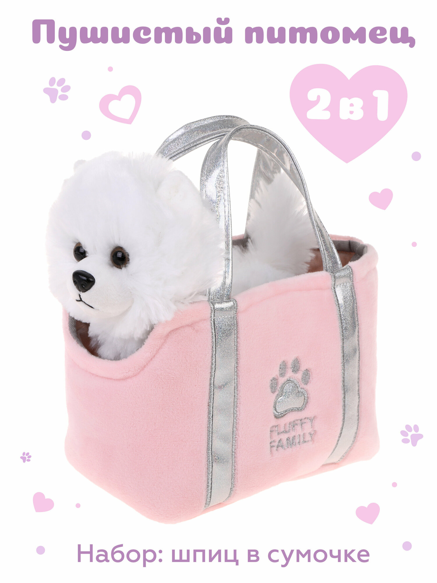 Купить Мягкая игрушка Fluffy Family в сумочке Щенок Шпиц, искусственный мех, 19 см, белый