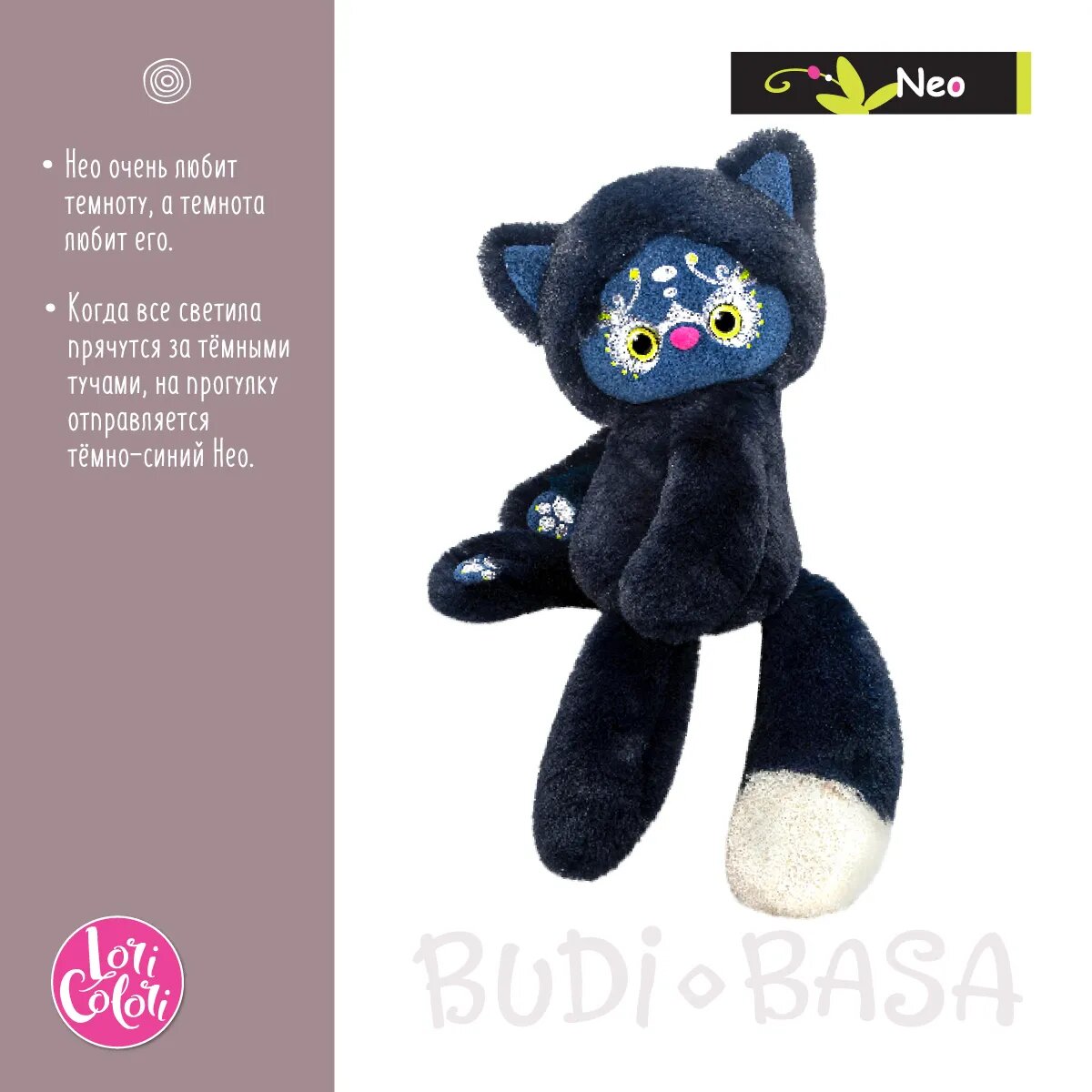 Budi Basa Мягкая Игрушка LoriColori. Нео (черный, 25см, в подарочной коробке) LR25-06, (ООО "МПП")