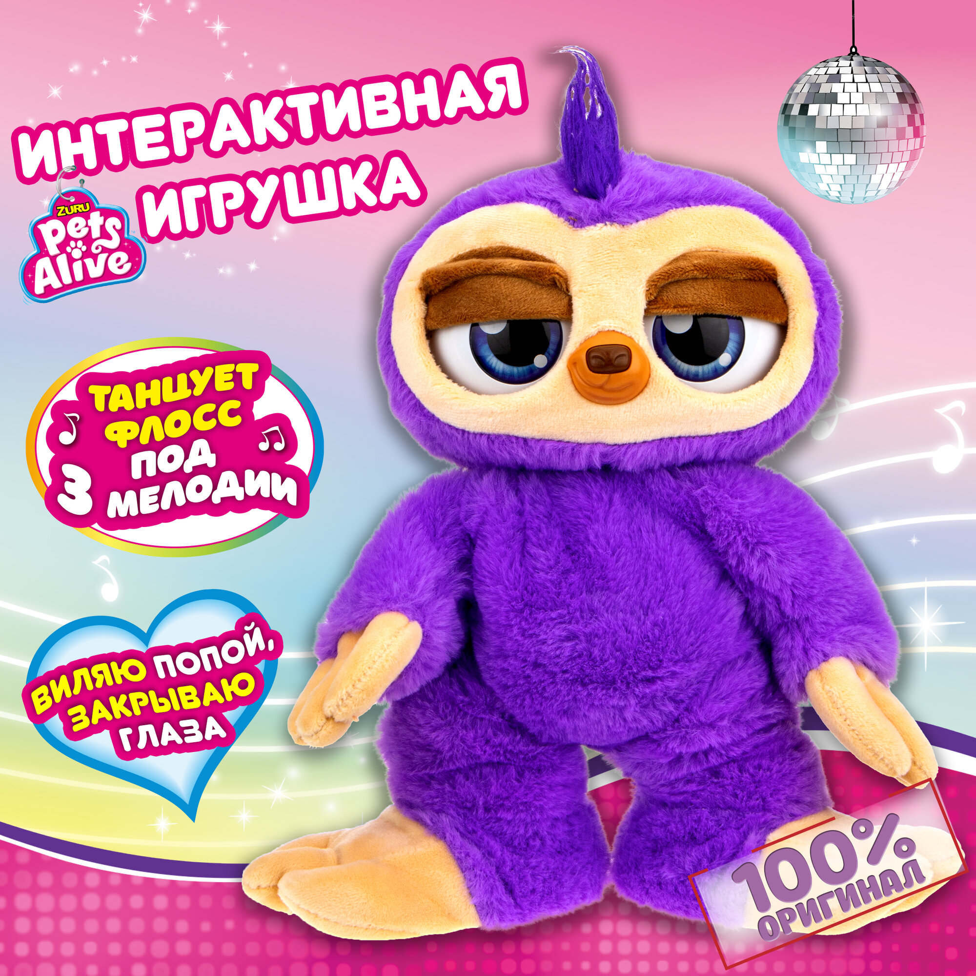 Купить ZURU Игрушка Ленивец PetsAlive cо звук эффектами, танцует (3 мелодии) , виляет попой, закрывает гла
