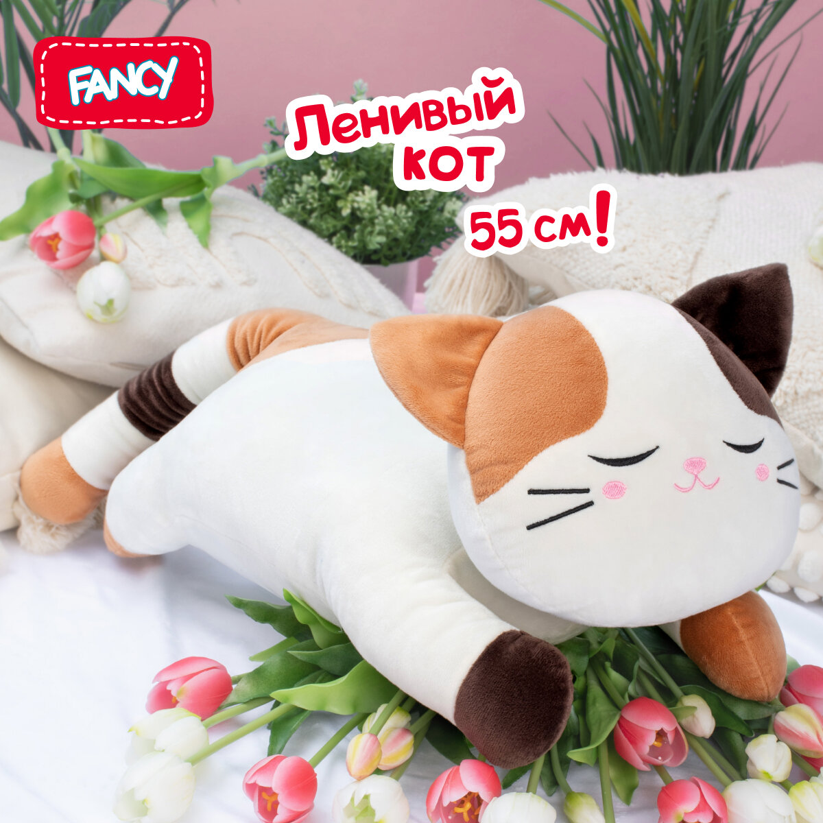 Большая мягкая игрушка-подушка Ленивый Кот от бренда FANCY 55 см. интересное: