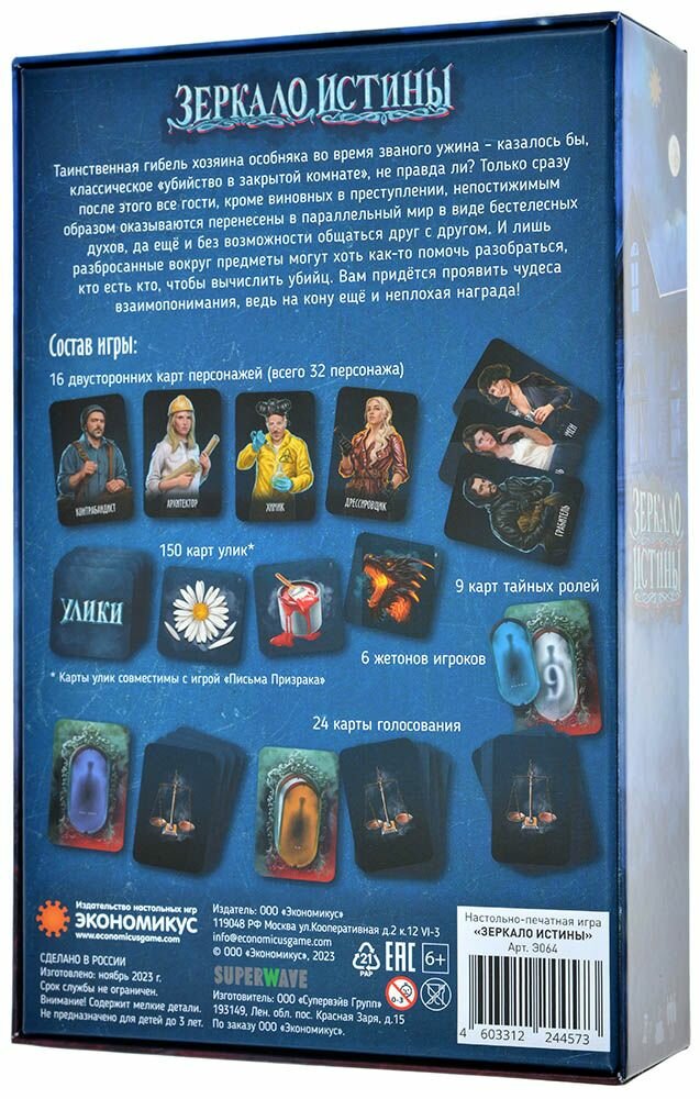 Настольная игра Экономикус "Письма призрака. Зеркало Истины", продолжение серии, 2-6 игроков, от 8 лет, 30 минут