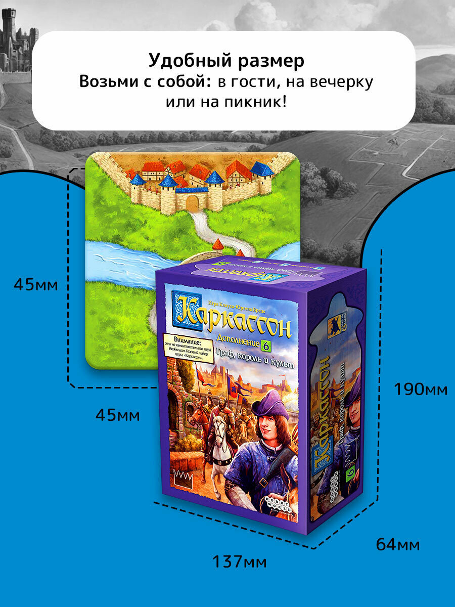 | Дополнительная информация | позволяет расширить функционал базовой игры Каркассон (приобретается отдельно) |