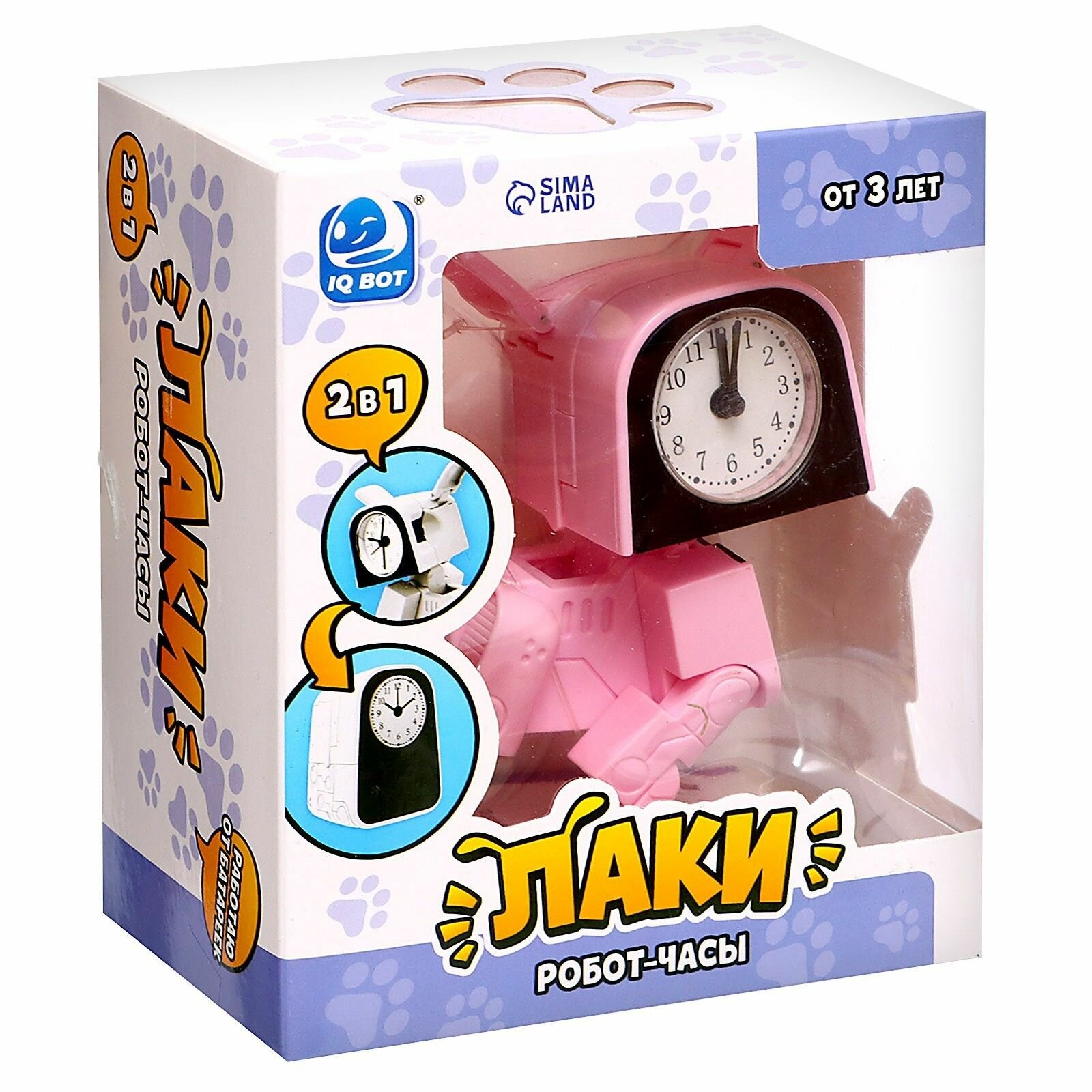 Купить Робот-часы "Щенок", трансформируется в будильник, работает от батареек, цвет розовый