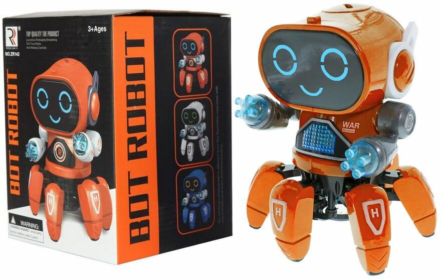 Интерактивный танцующий робот Bot Robot Pioneer, синий / Робот краб (шесть ног) / Свет, звук / Игрушка для детей