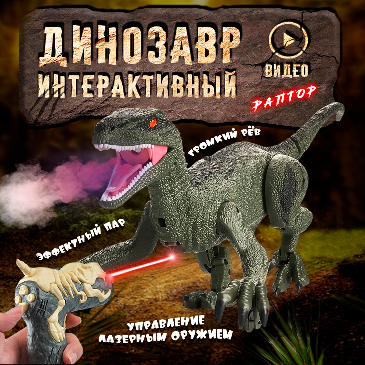 Игрушка динозавр Раптор на пульте управления со светом, звуком и паром из пасти