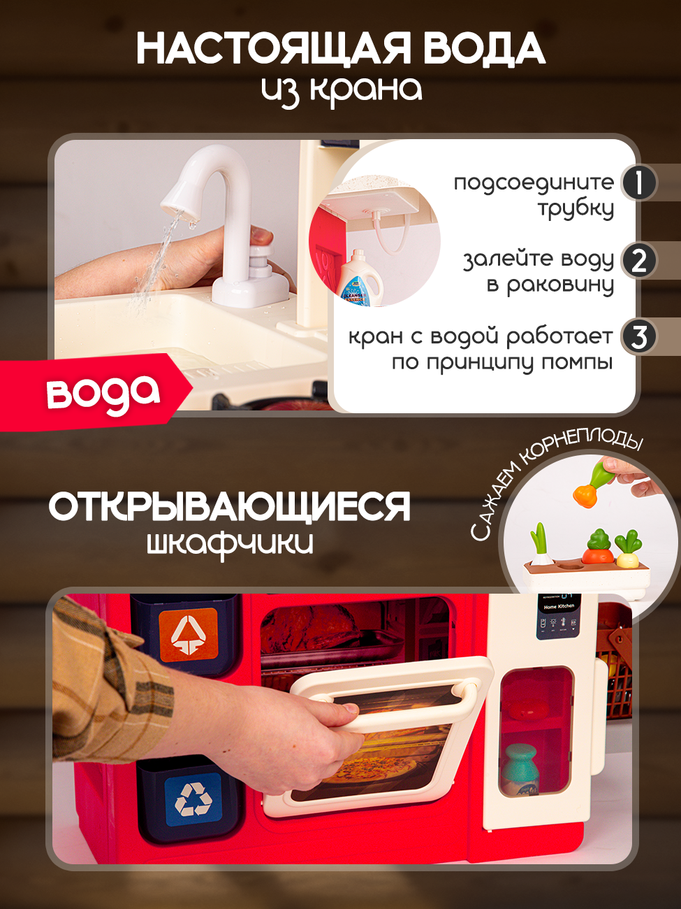 Кухня детская игровая 100 см с водой и паром, свет, звук интересное: