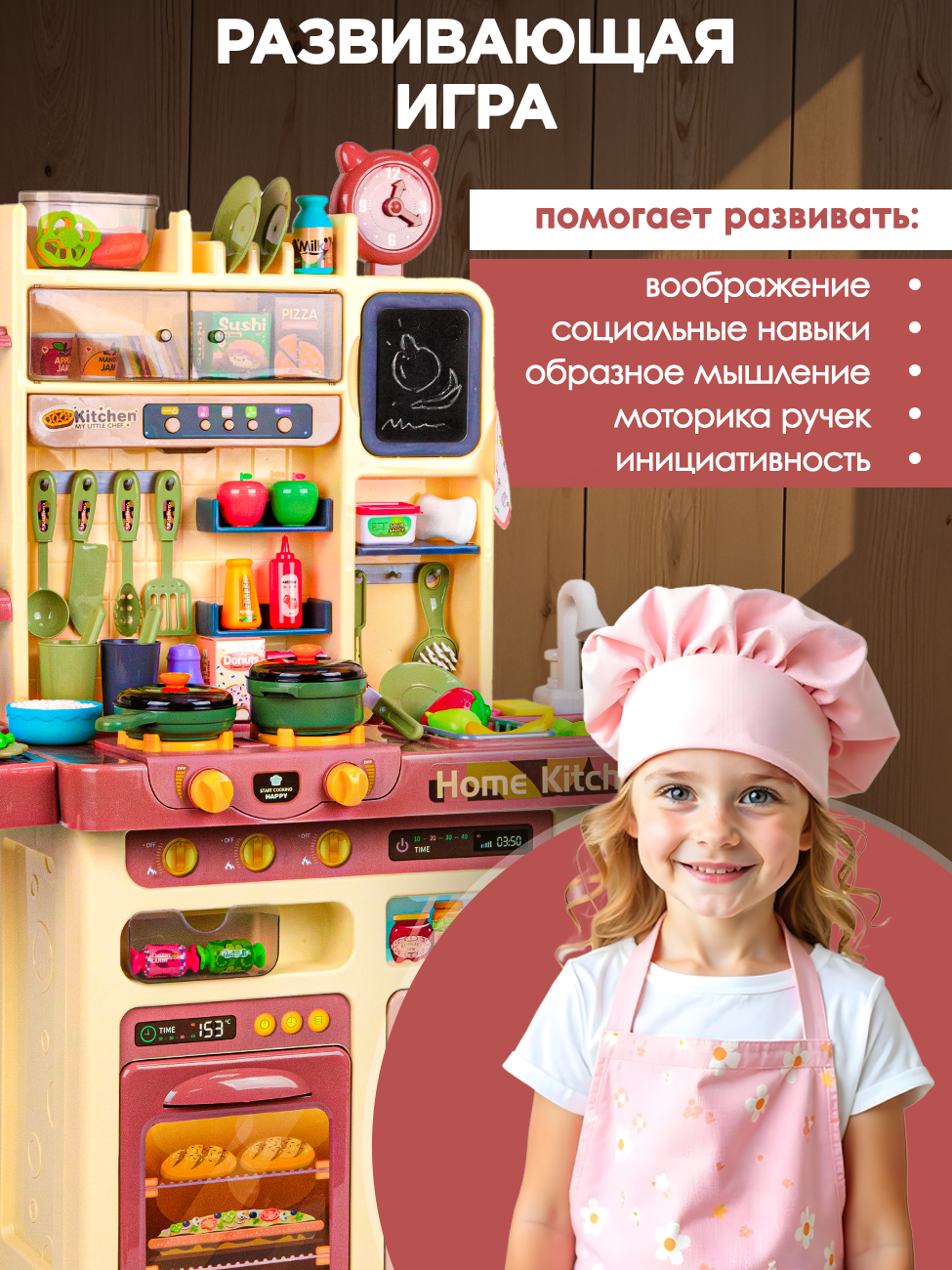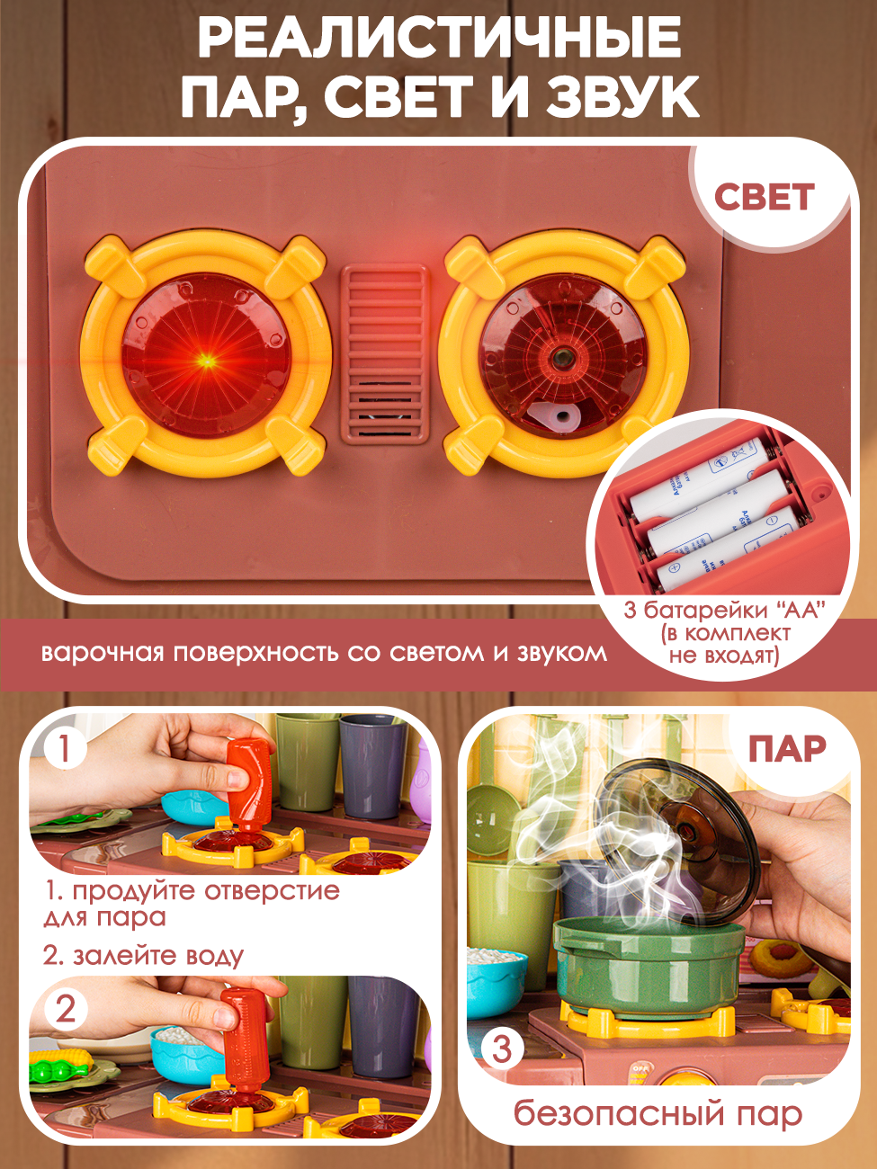 Большая детская кухня с холодным паром, водой, светом, звуком