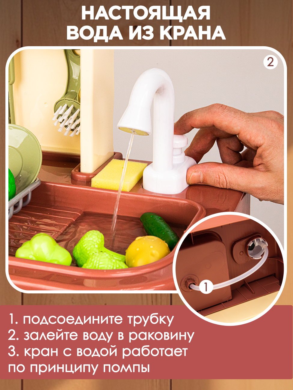 Кухня детская игровая 100 см с водой и паром, свет, звук